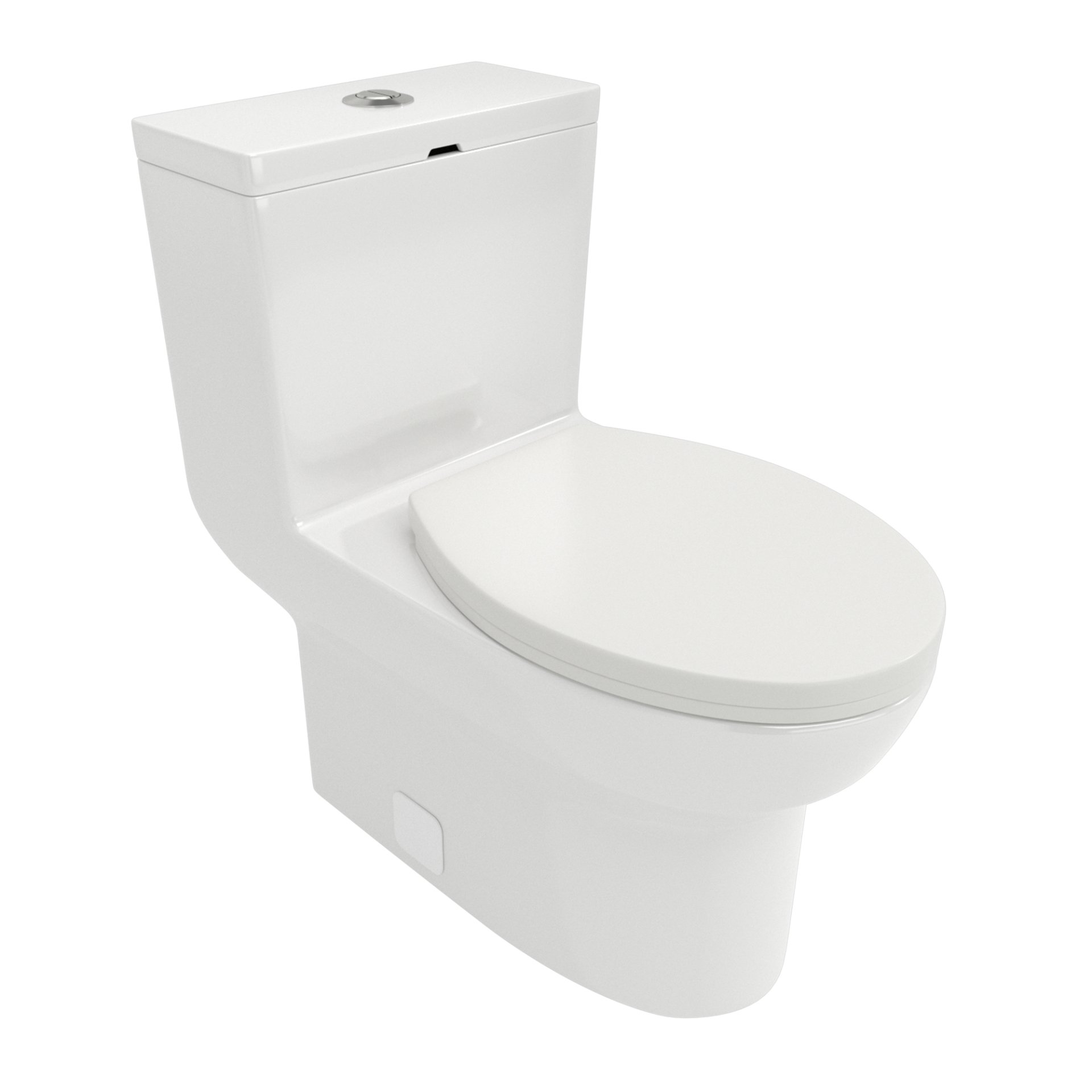 • Seamless Design: The one-piece elongated toilet offers a modern look with a fully skirted bowl.