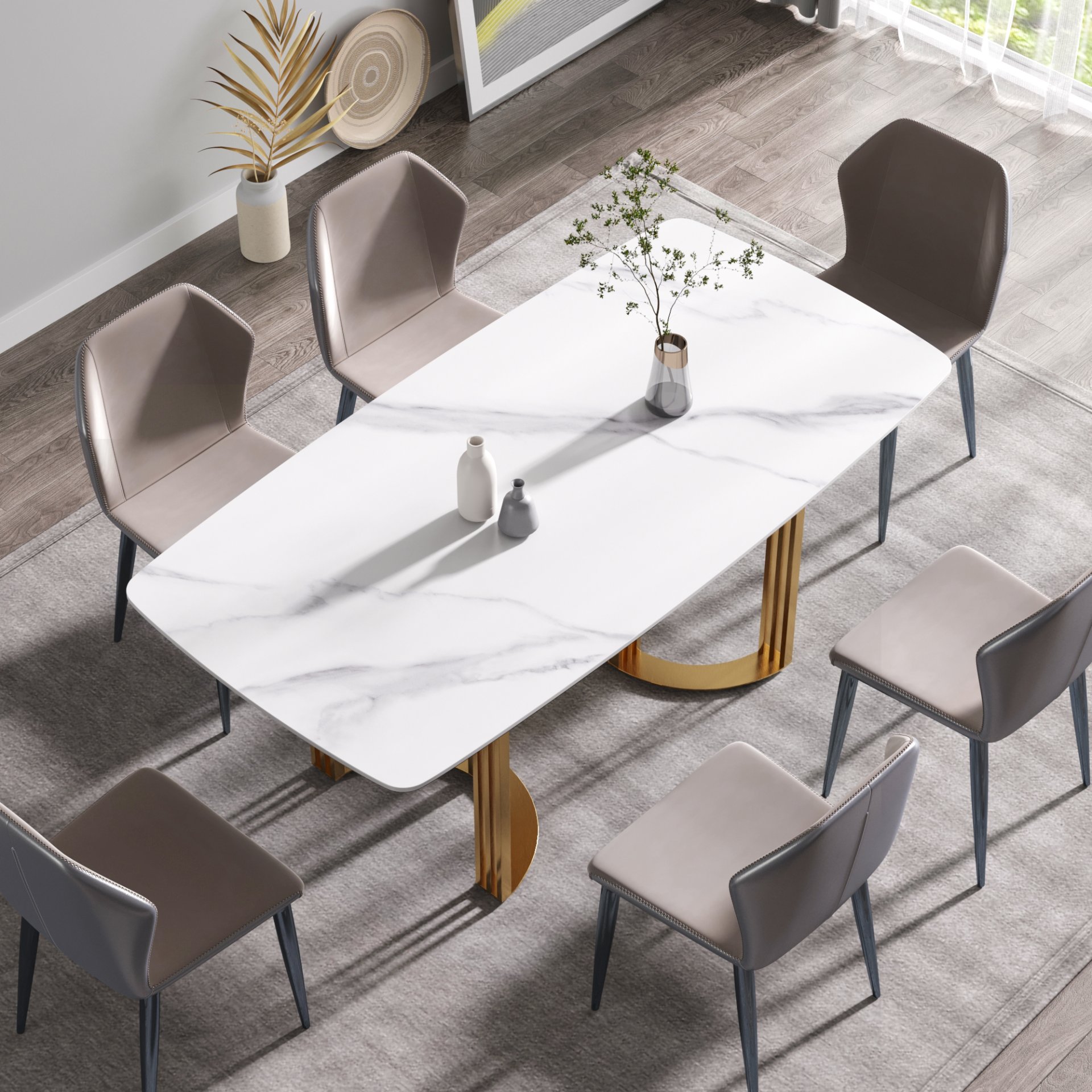 • Elegant Design: The white artificial stone top with golden metal legs adds a touch of luxury to your dining space.