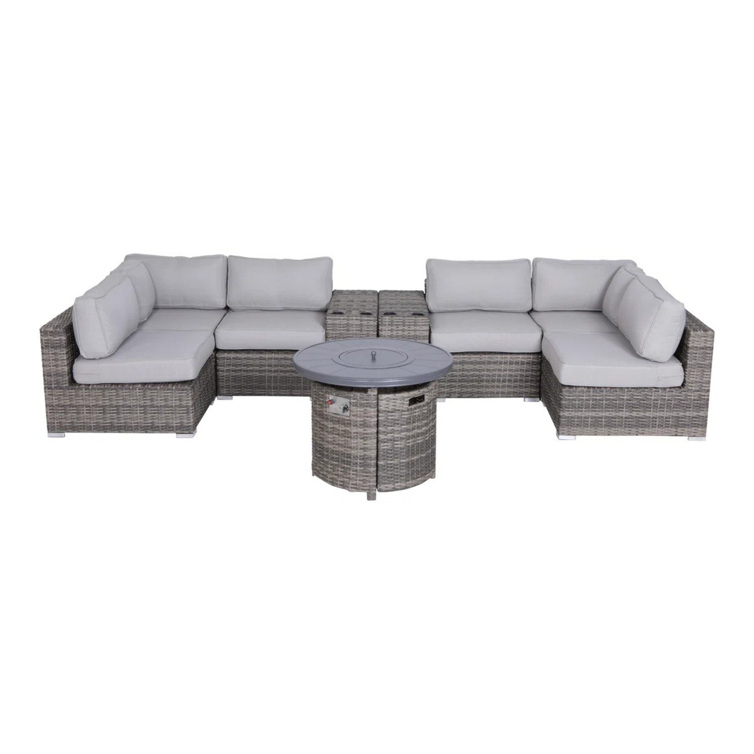 • Complete Set: Includes 1 sofa, 1 sectional, 2 tables, 14 cushions, and 1 fire pit for a cohesive setup.