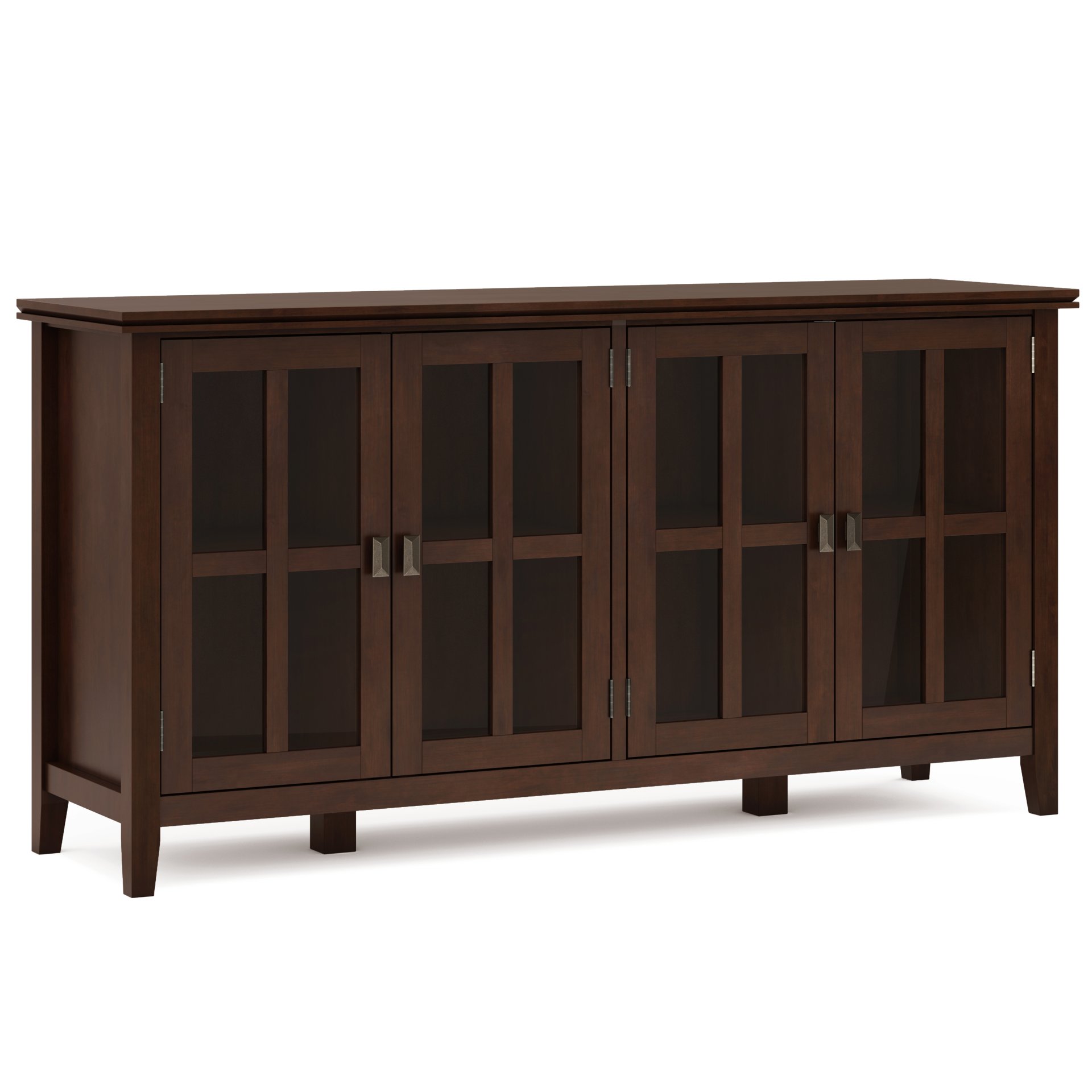 • Features four (4) mullion framed tempered glass doors that open to four adjustable shelves for versatile storage