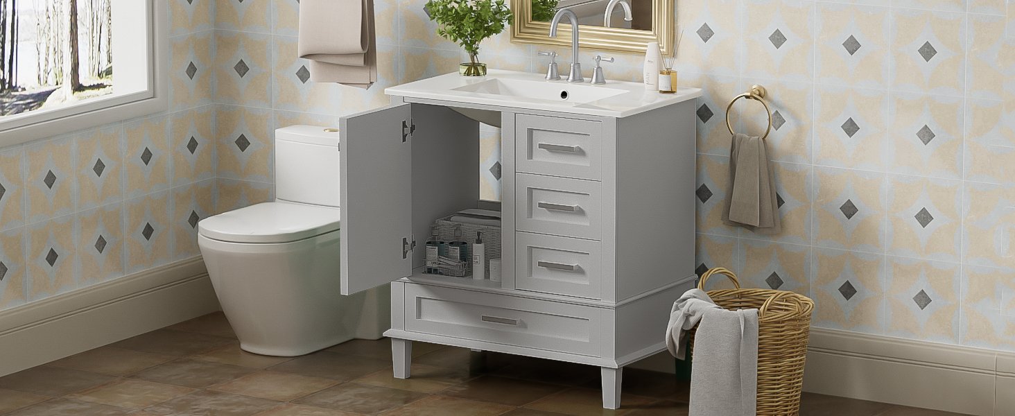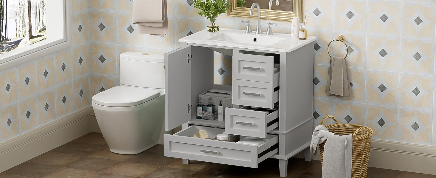 • Keep Your Bathroom Organized: Features 1 cabinet and 3 drawers of different depths and widths for neat organization of bathroom essentials.