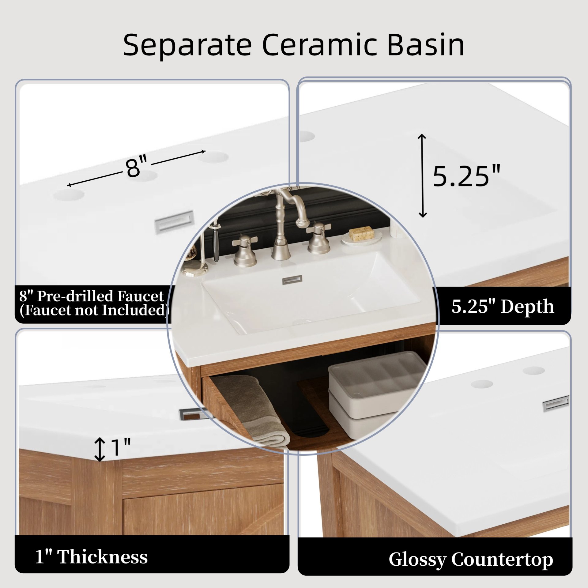 • Ceramic Sink Integration: Deep rectangle basin with non-porous surface resists stains, scratches, and discoloration.