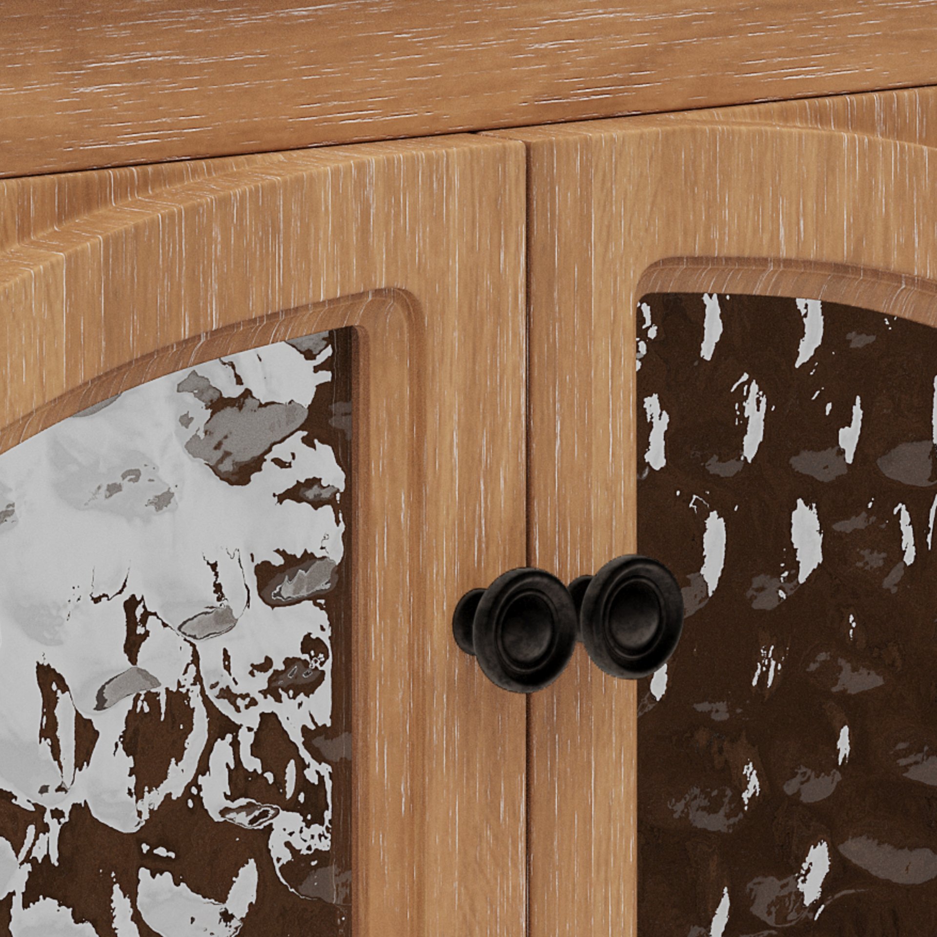 • Bronze Metal Pulls: Antique-style hardware complements the retro door frames and enhances the vintage detailing.
