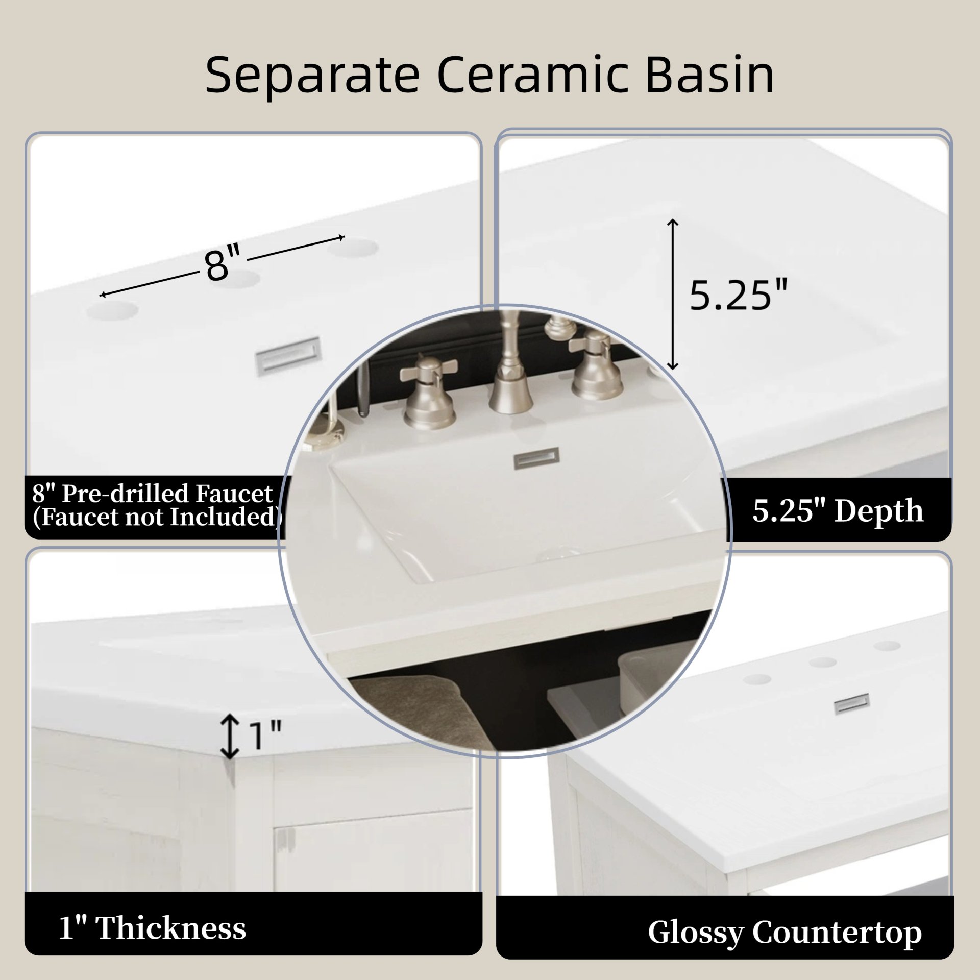 • Ceramic Sink with Deep Basin: Integrated rectangle ceramic sink offers durable, non-porous surface with ample washing space and pre-drilled faucet hole.