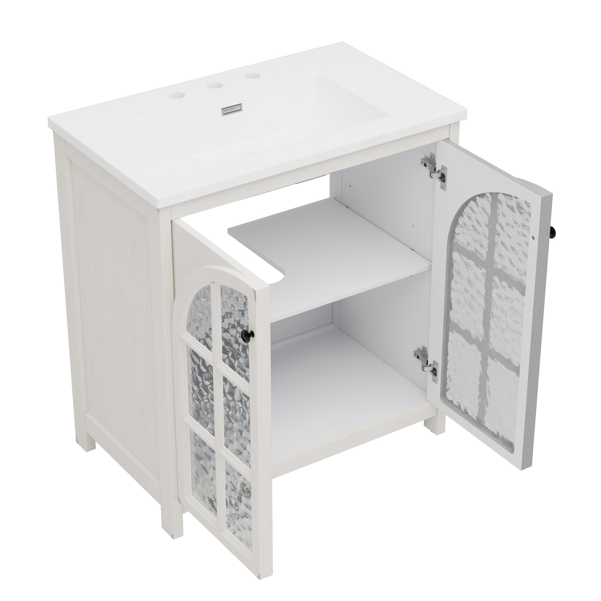• Vintage Farmhouse Design: Antique white finish with faux aged details creates a timeless, rustic look that complements various bathroom styles.