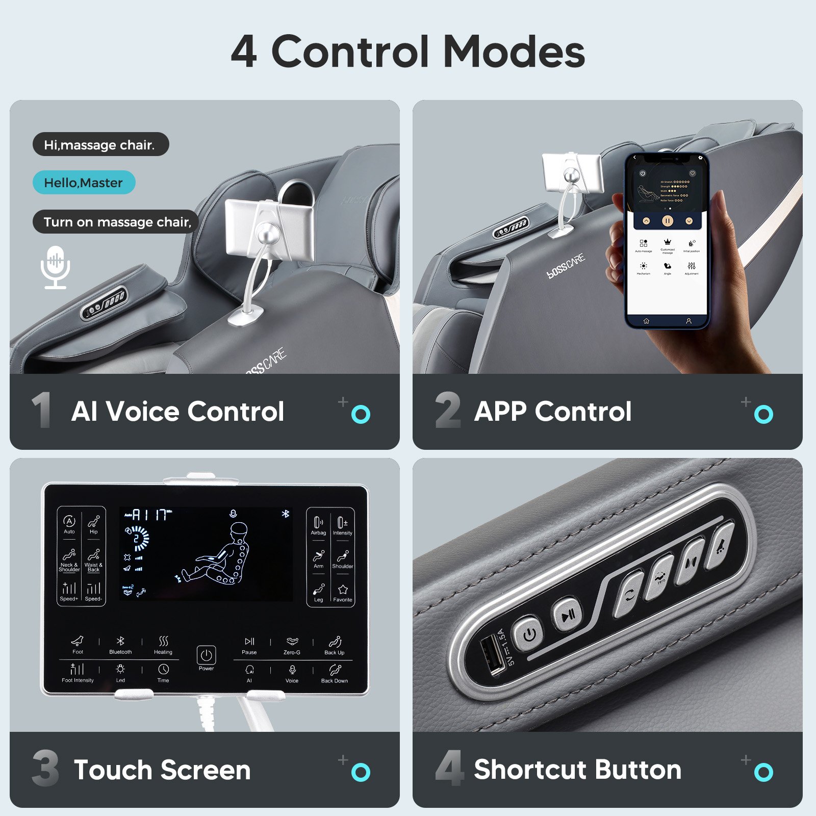 USB Charging Jacks: Indulge in the relaxation experience with our zero gravity massage chairs, complete with convenient USB charging jacks. Say goodbye to low battery anxiety as you unwind and destress