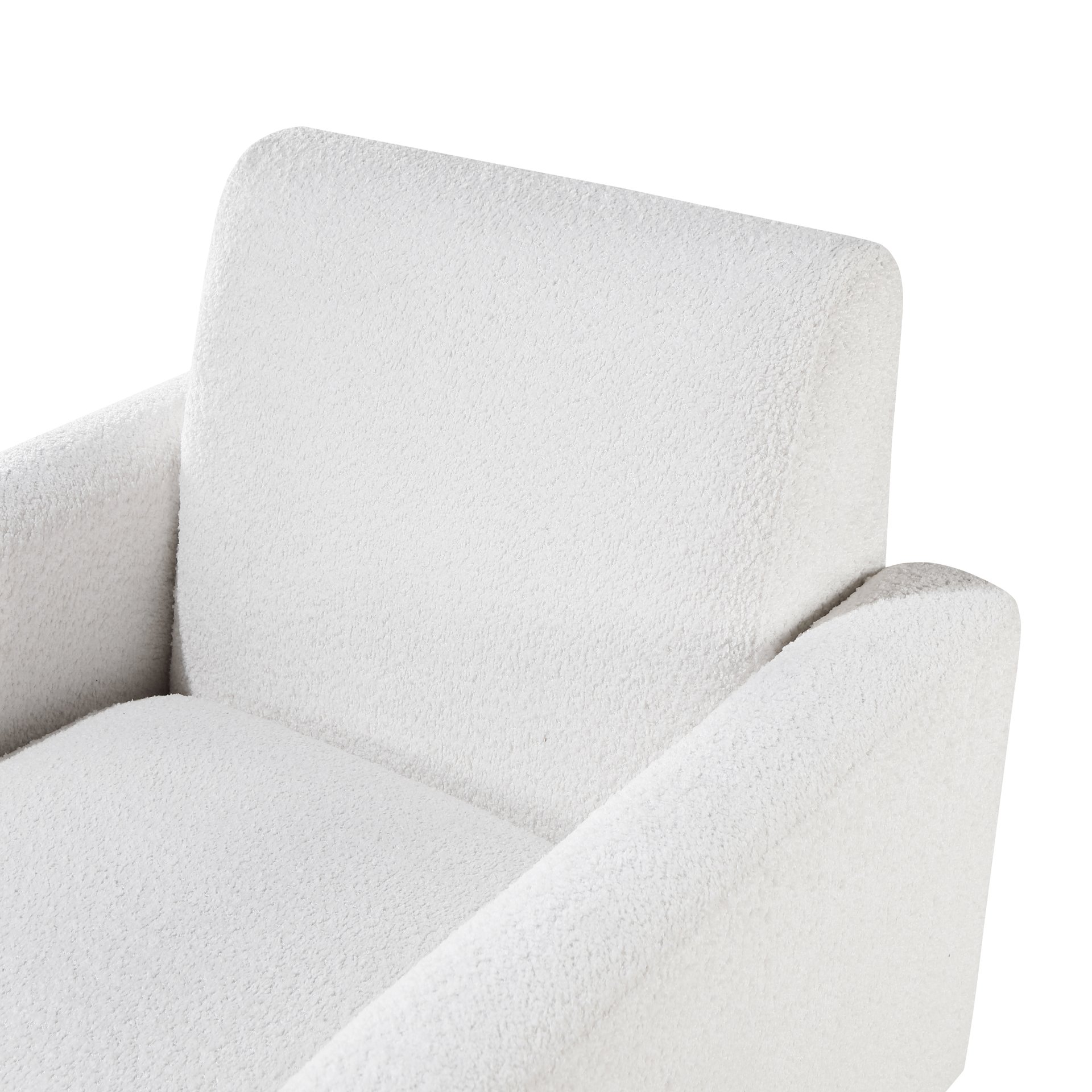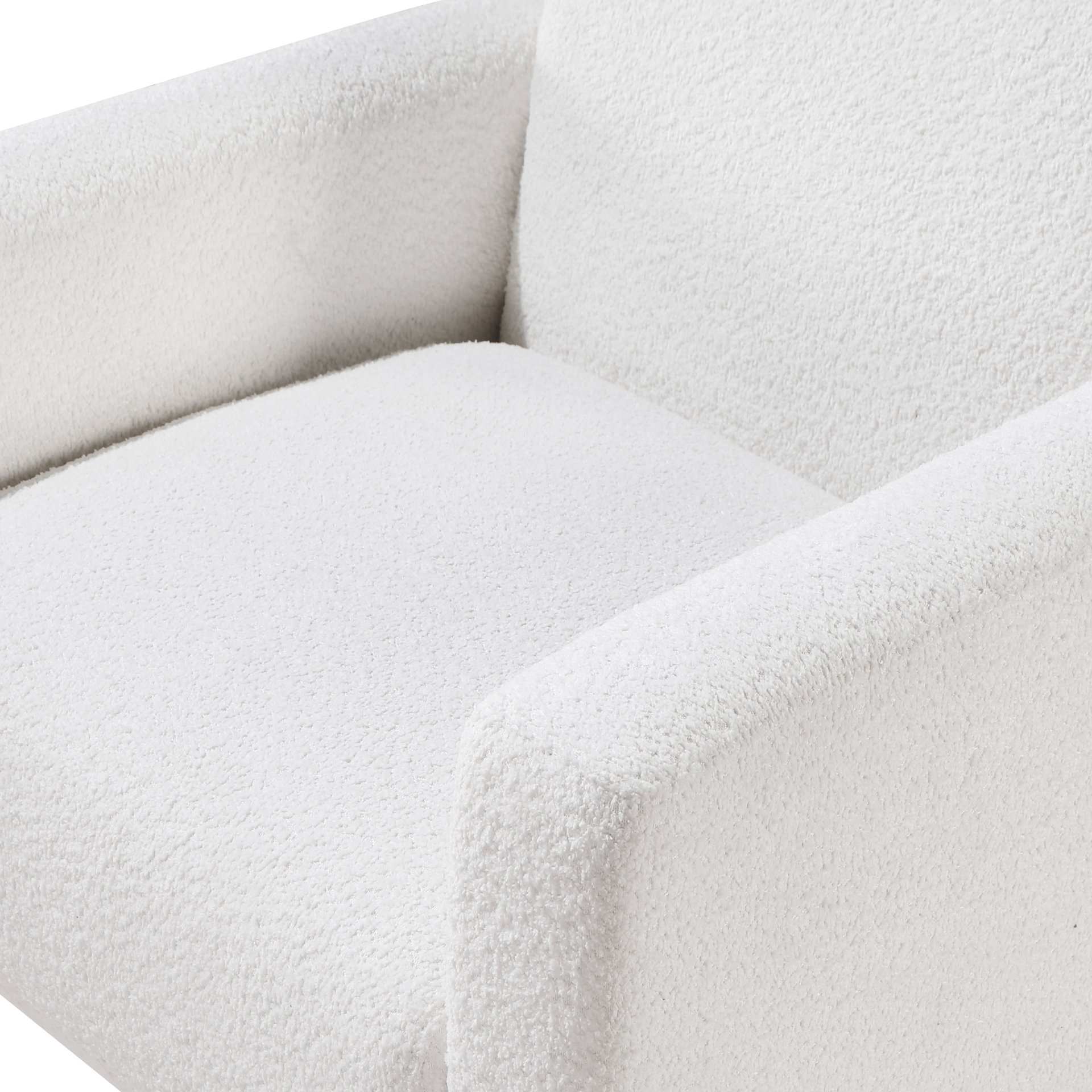 • Luxurious Upholstery: Milky white boucle fabric that is soft to the touch and durable.