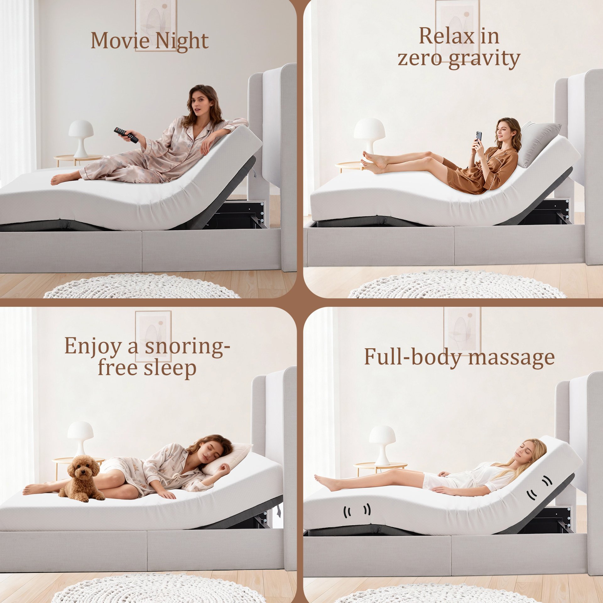 • Fully Adjustable Sleep System: Independent head and foot incline, zero gravity mode, and dual massage motors for customizable comfort and health benefits