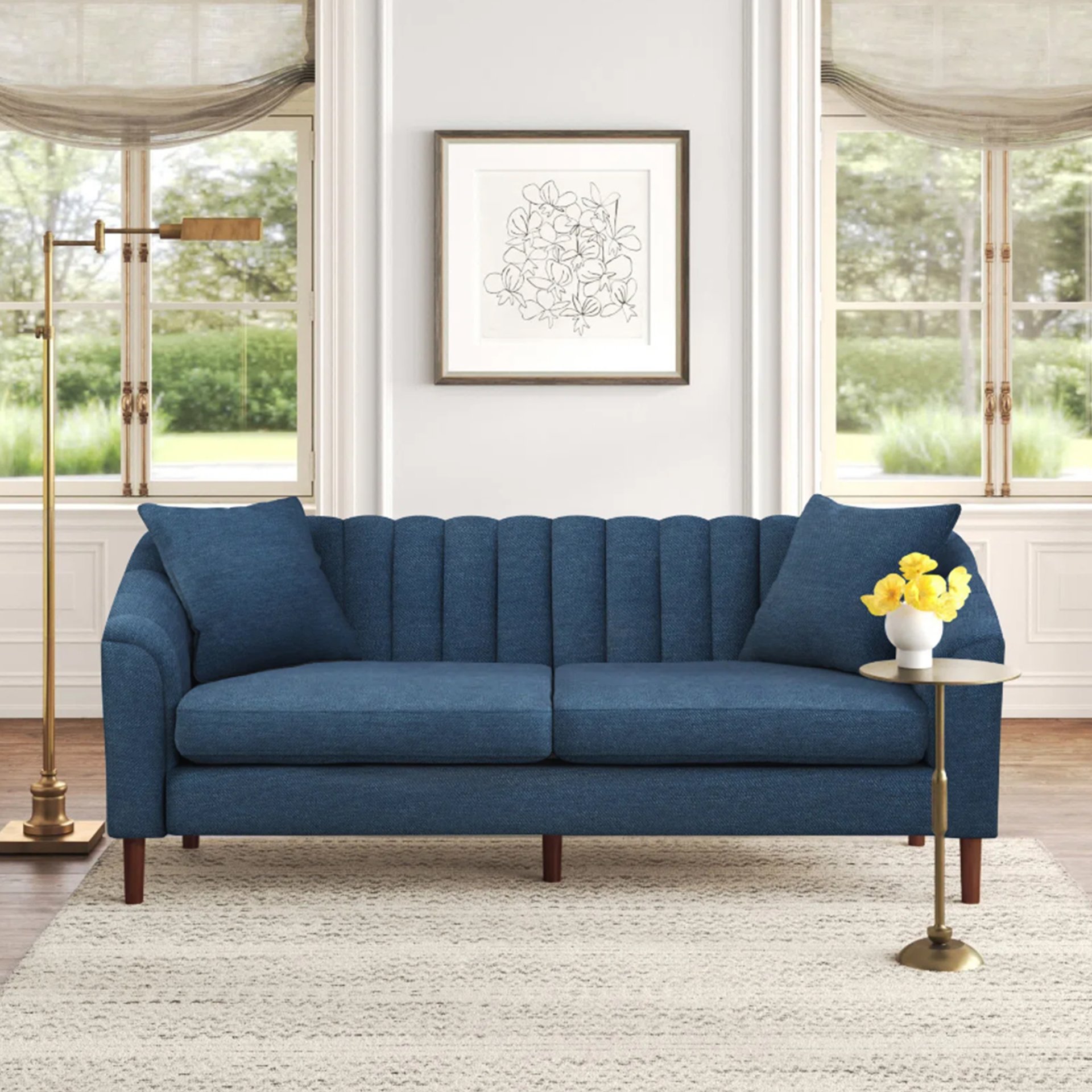• Sloped Arms: Graceful shell-shaped arms for enhanced coziness and elegance.