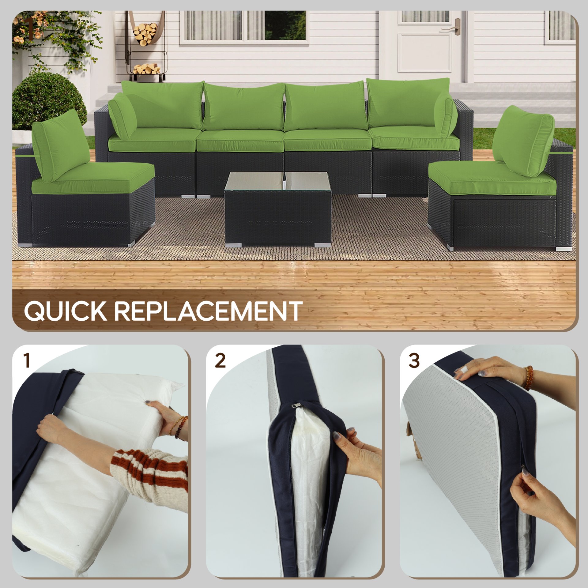 Cushion Covers For 7 Piece Wicker Sectional Sofa, 14 Pack Seat And Back Slipcovers With Zipper – Green