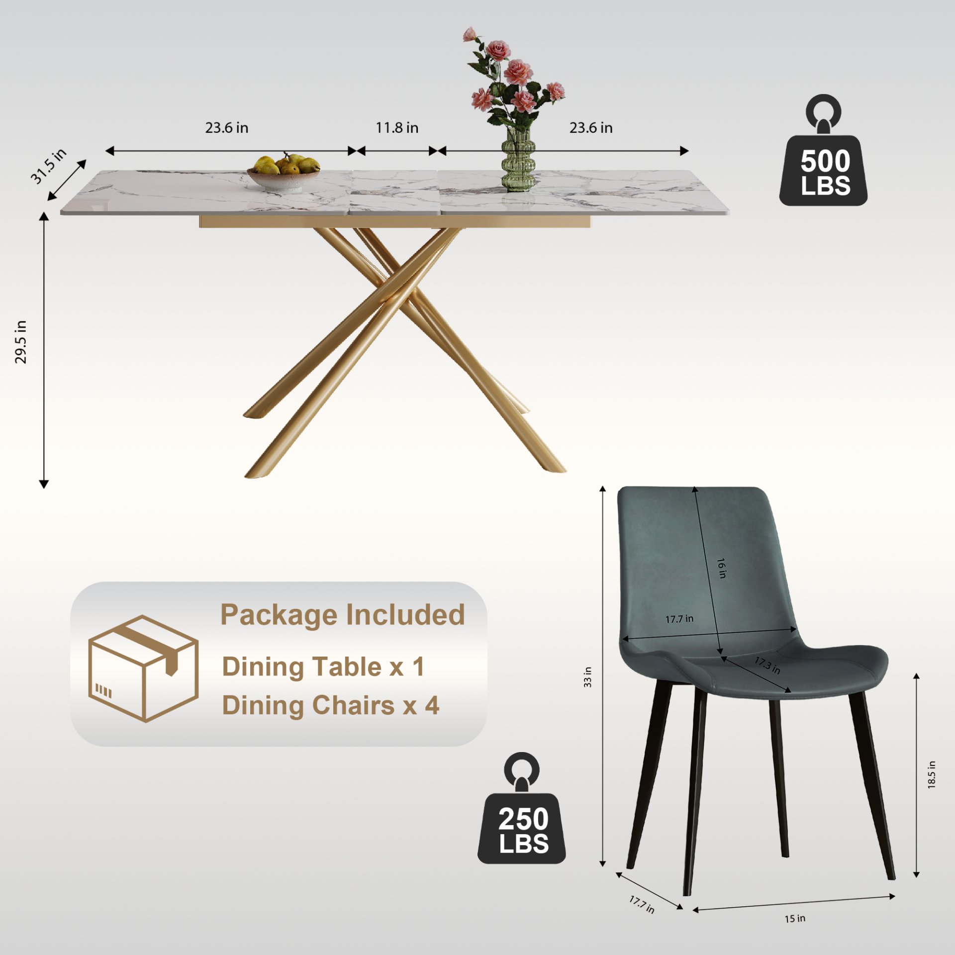 • 4 Gray PU Chairs Included: Upholstered seats offer comfort and durability, matching the table's design.