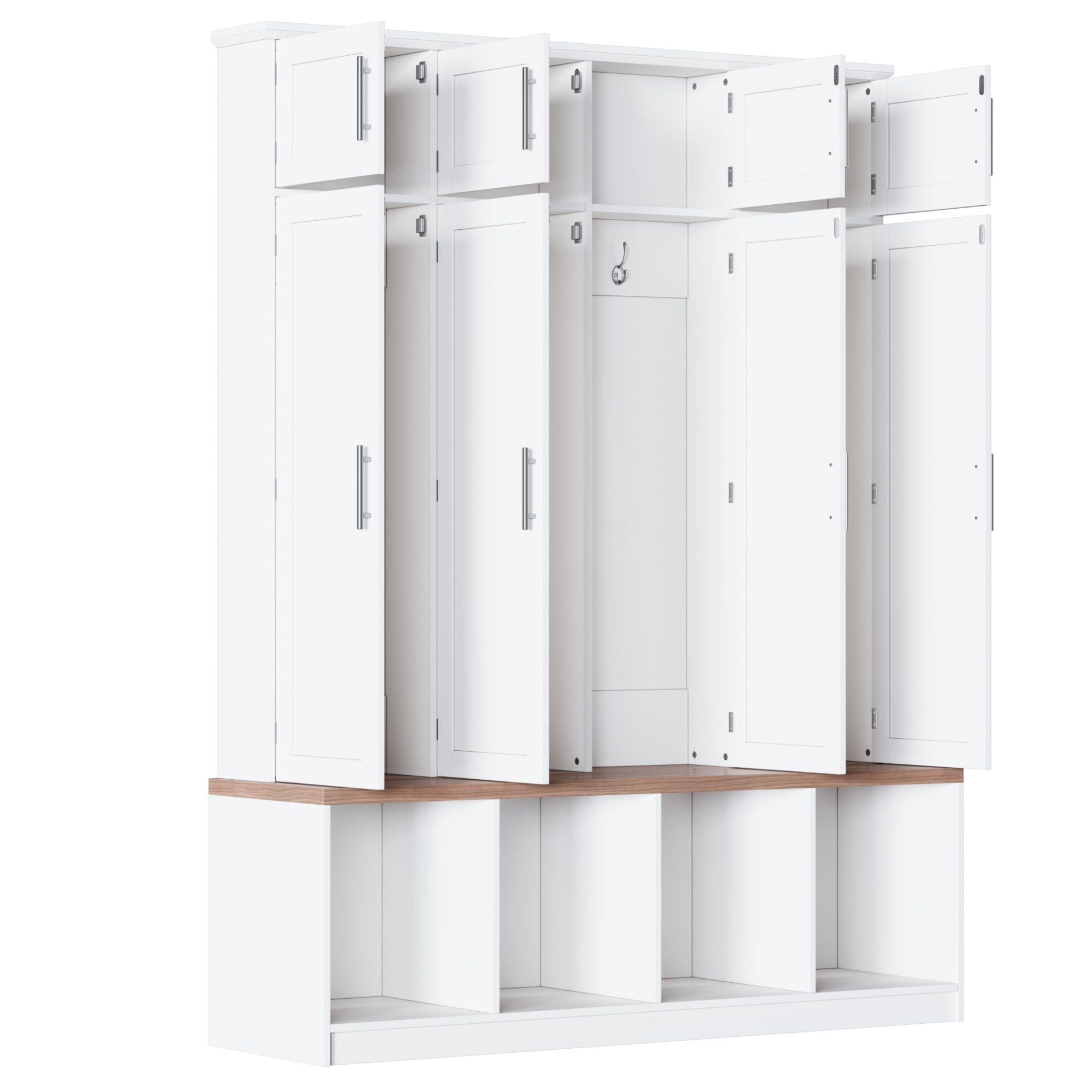 • Spacious Storage: This entryway cabinet boasts 8 cabinets and 4 bottom open storage compartments, offering abundant space for shoes, bags, hats, and other essentials.