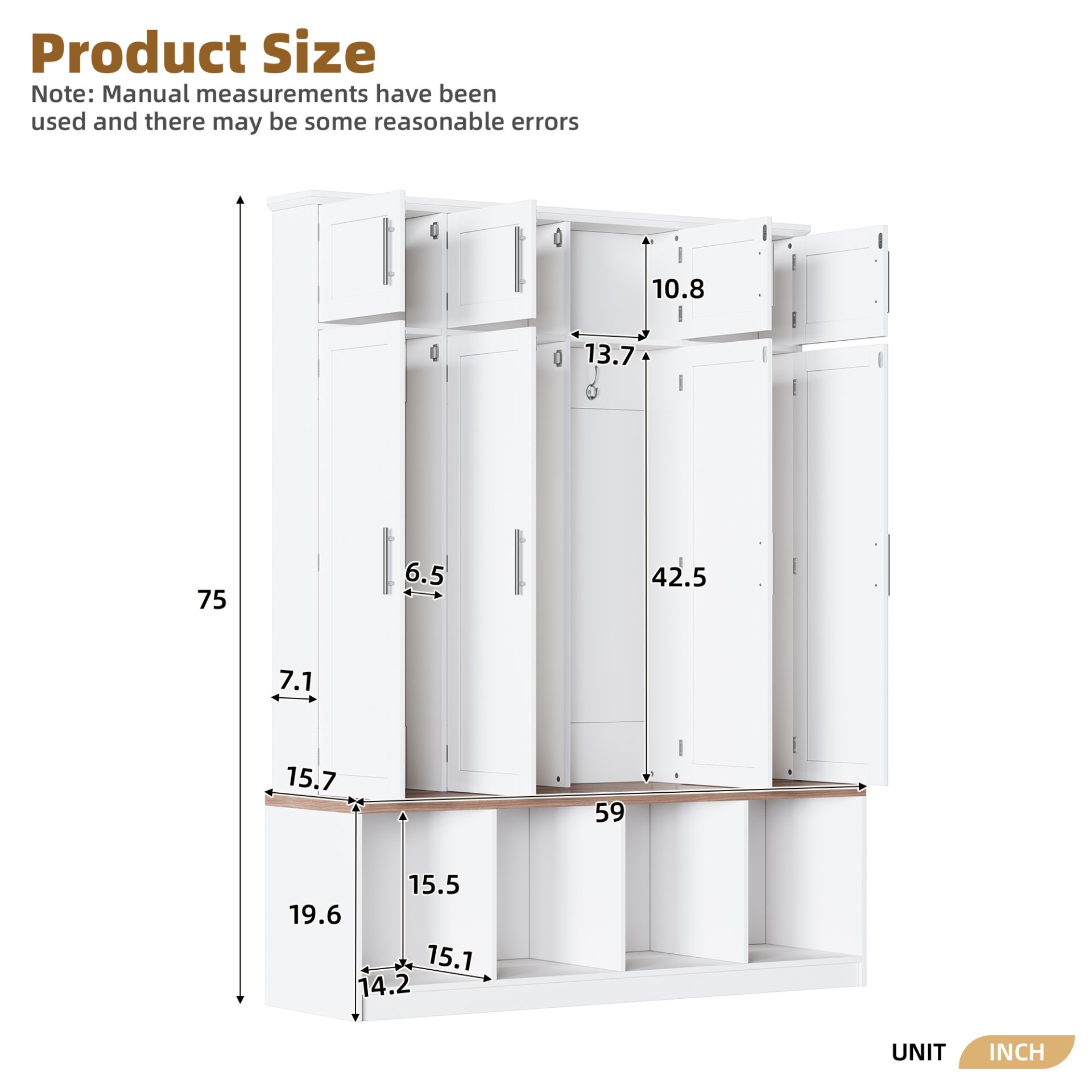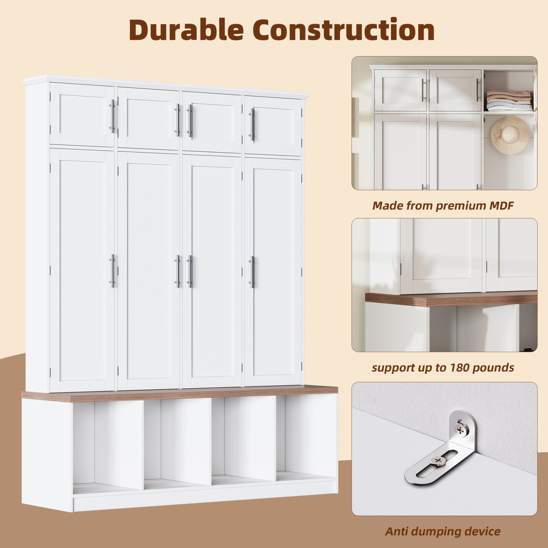 • Versatile 4-in-1 Function: This hall tree combines seating bench, shoe cabinet, hanging rack and storage cabinet into one seamless product. Whether you need a place to store things, or get a place to relax, this entryway cabinet can meet your needs.