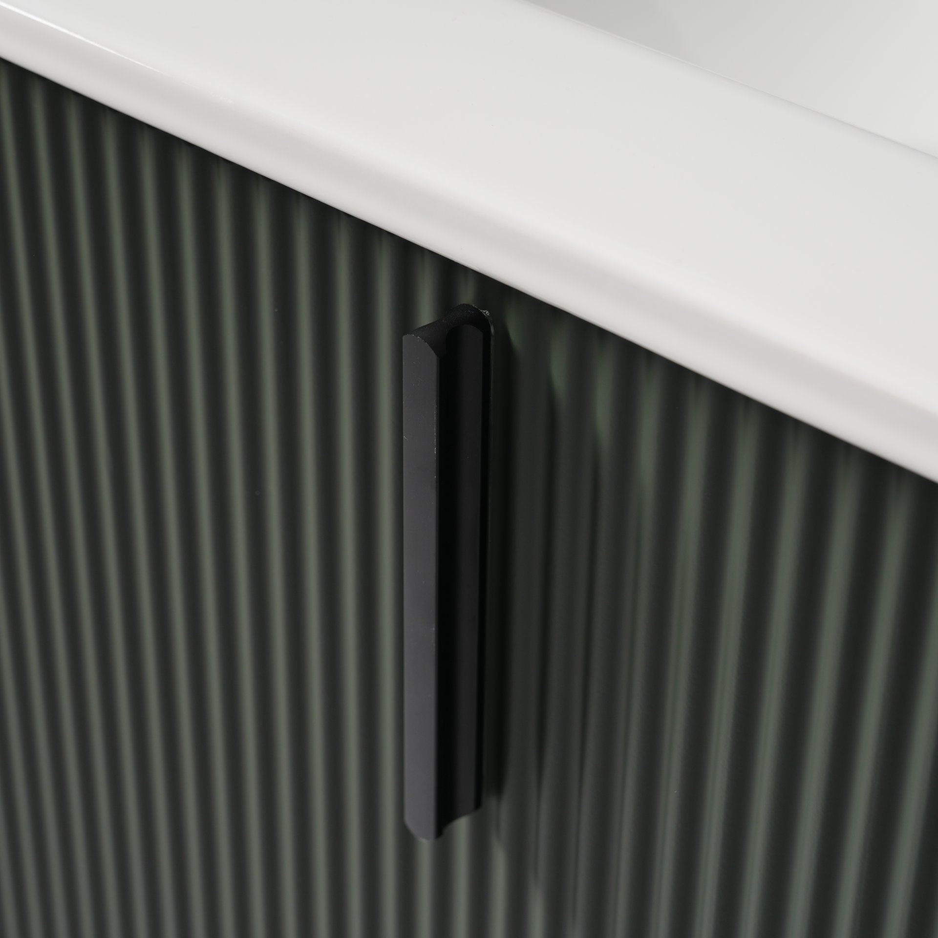 • Sleek Black Finger Pulls: Slim, monochromatic pulls offer understated elegance; complement modern fixtures and support one-handed operation even with wet hands.