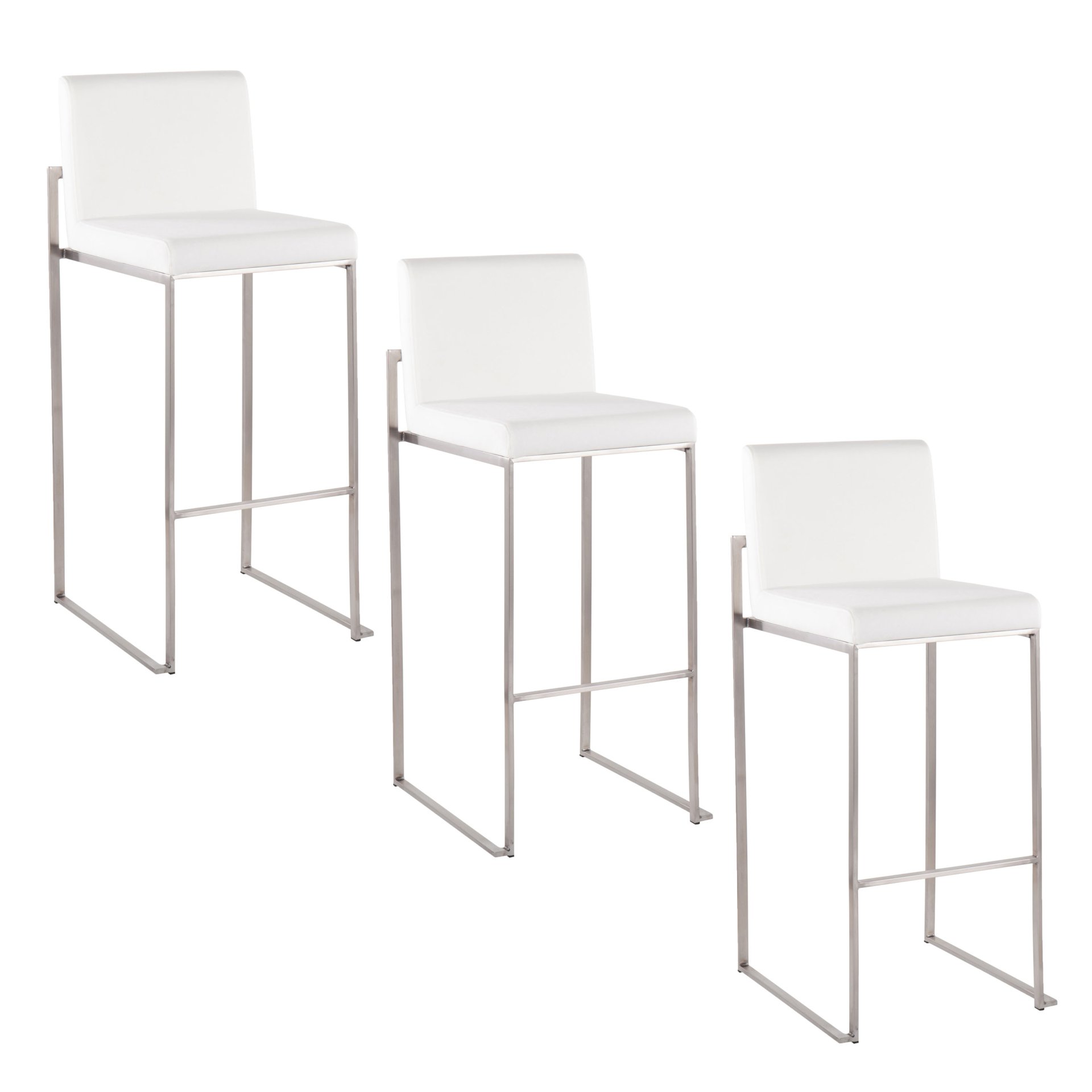 • Elegant Design: The Fuji High Back Barstool by LumiSource showcases contemporary elegance with its sleek metal frame and extra-wide upholstered seat, offering a sophisticated addition to any dining space.