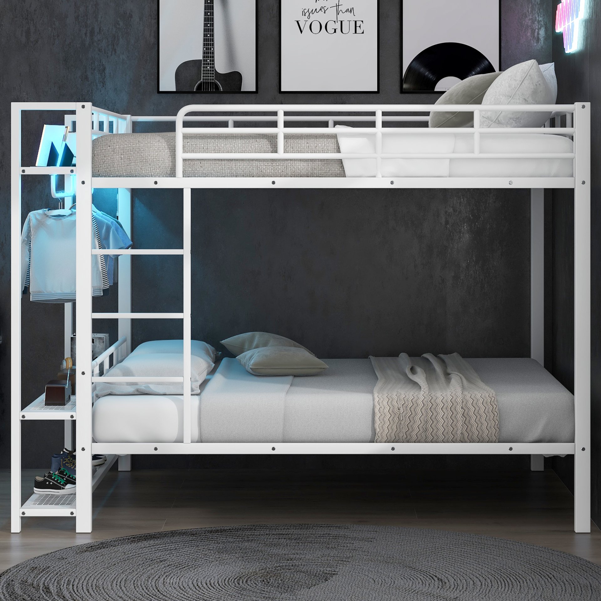 • Reinforced Guardrails: Full-length guardrails on the upper bunk ensure safety and peace of mind during use.