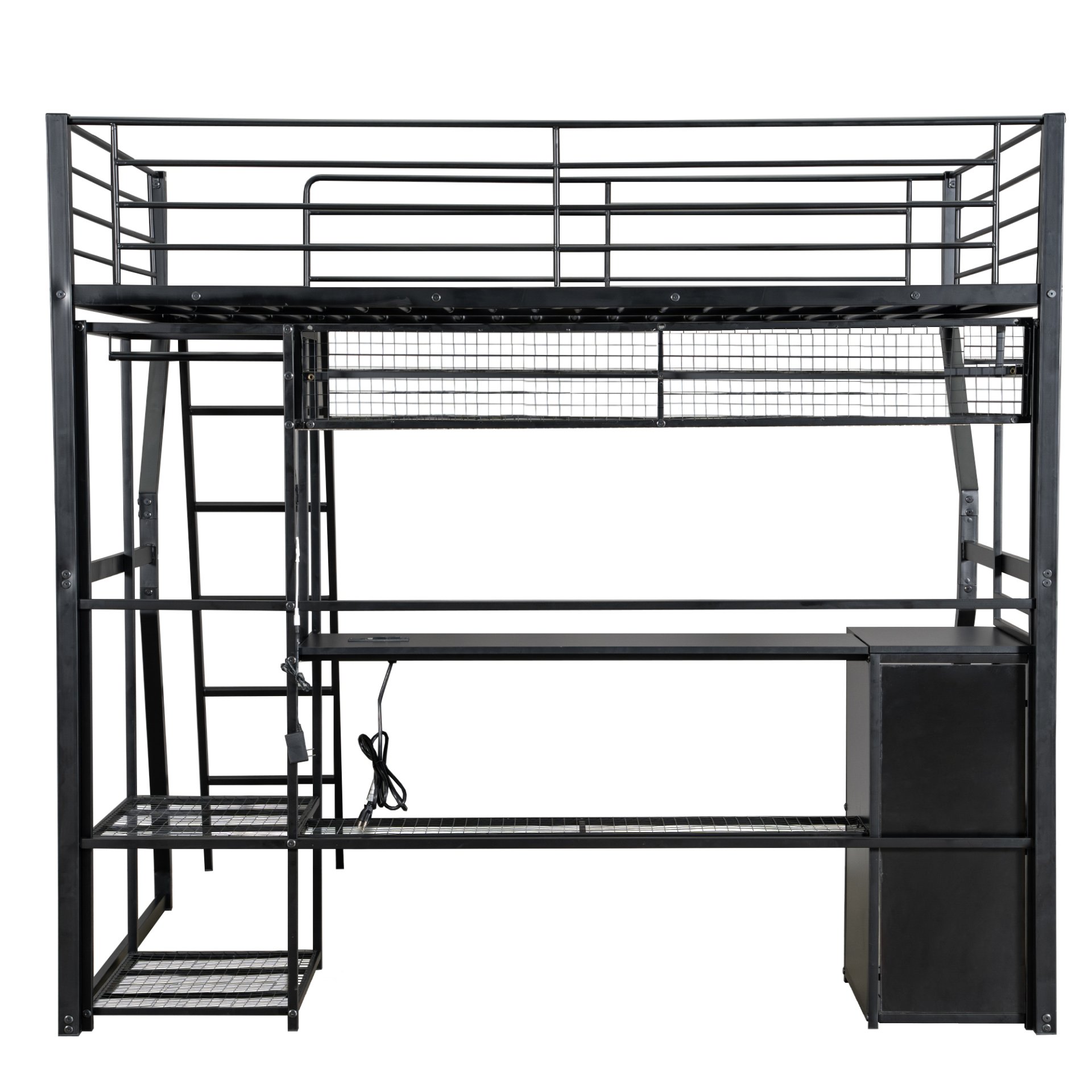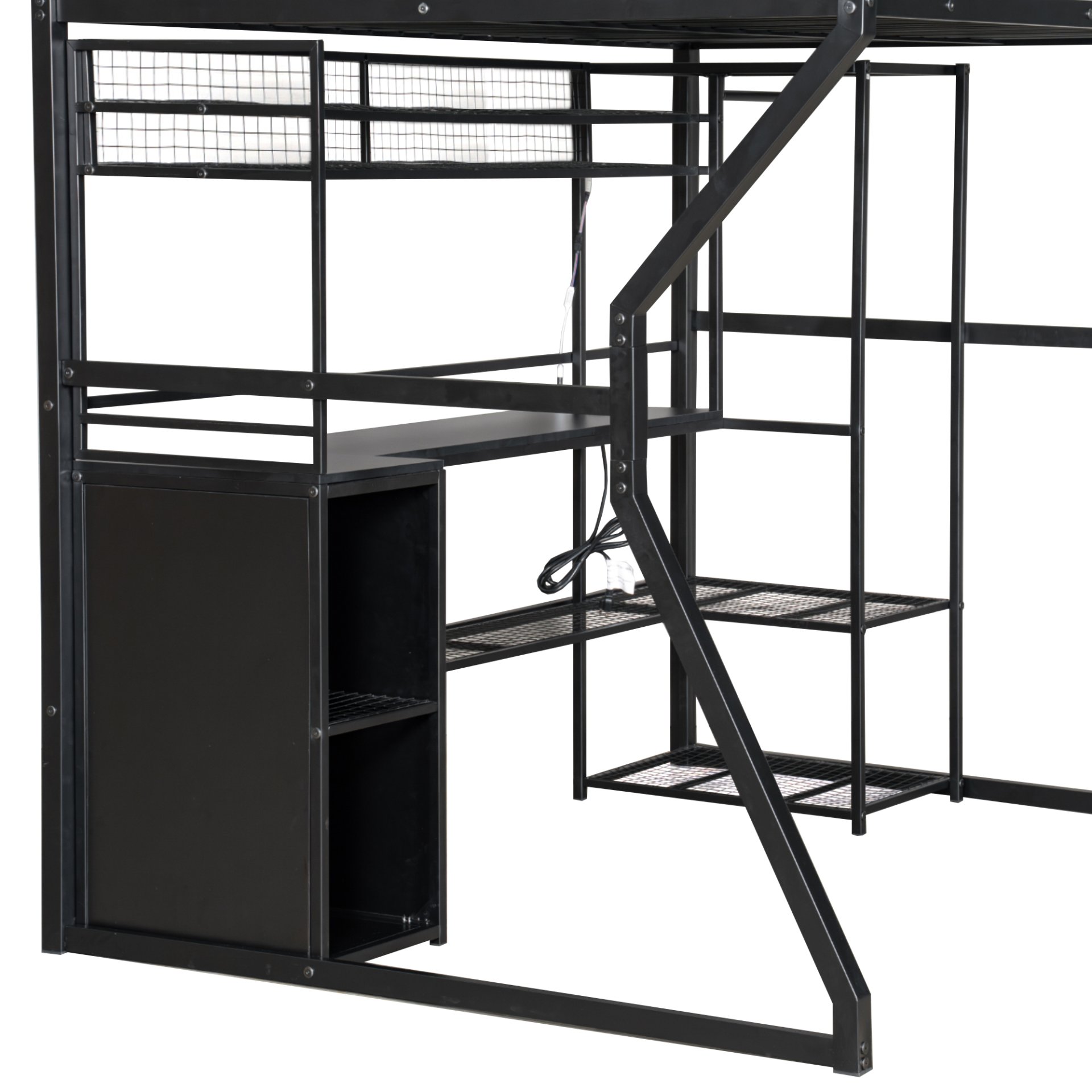• Space-saving Design: Includes a long desk and multiple shelves beneath the bed for study or storage, optimizing small room layouts.
