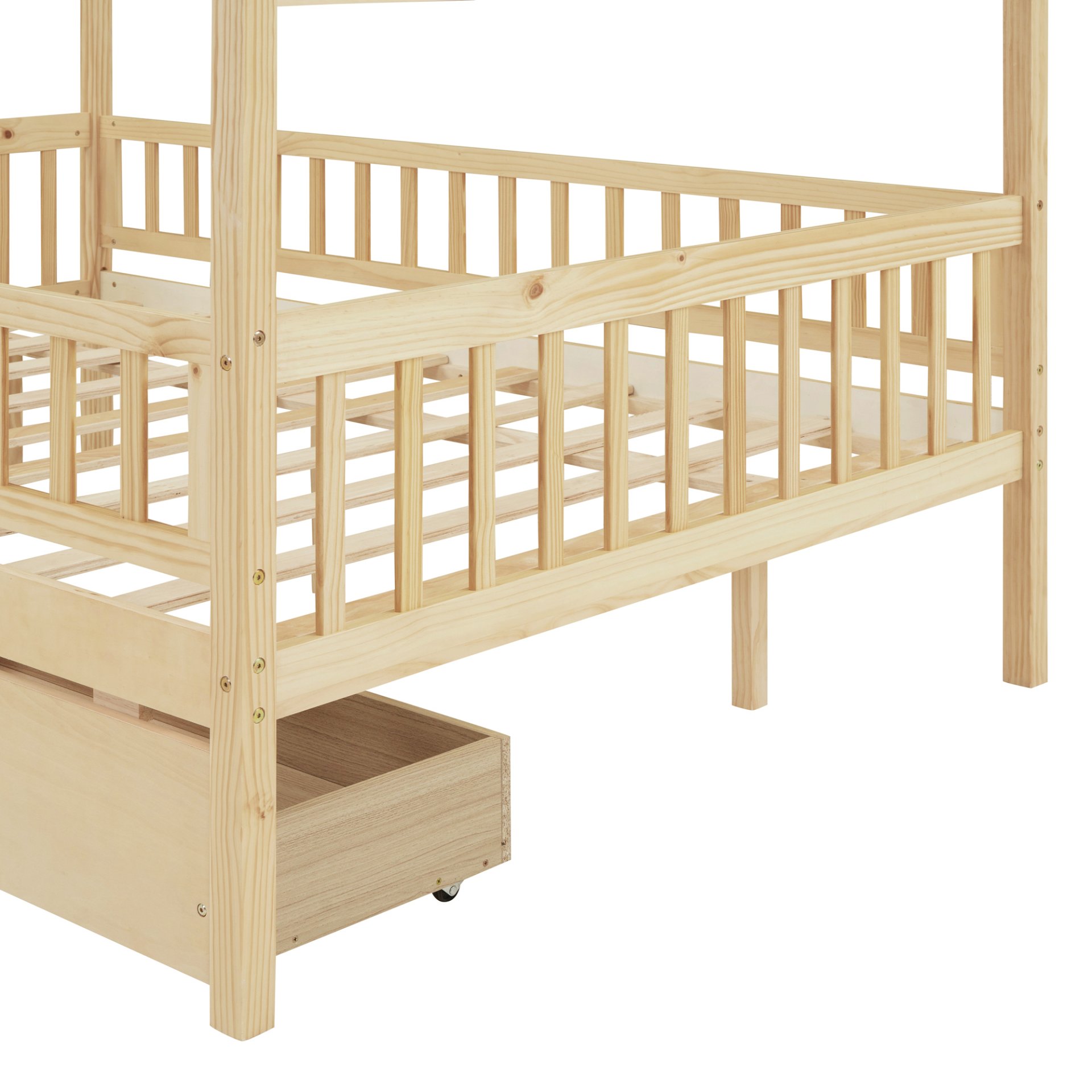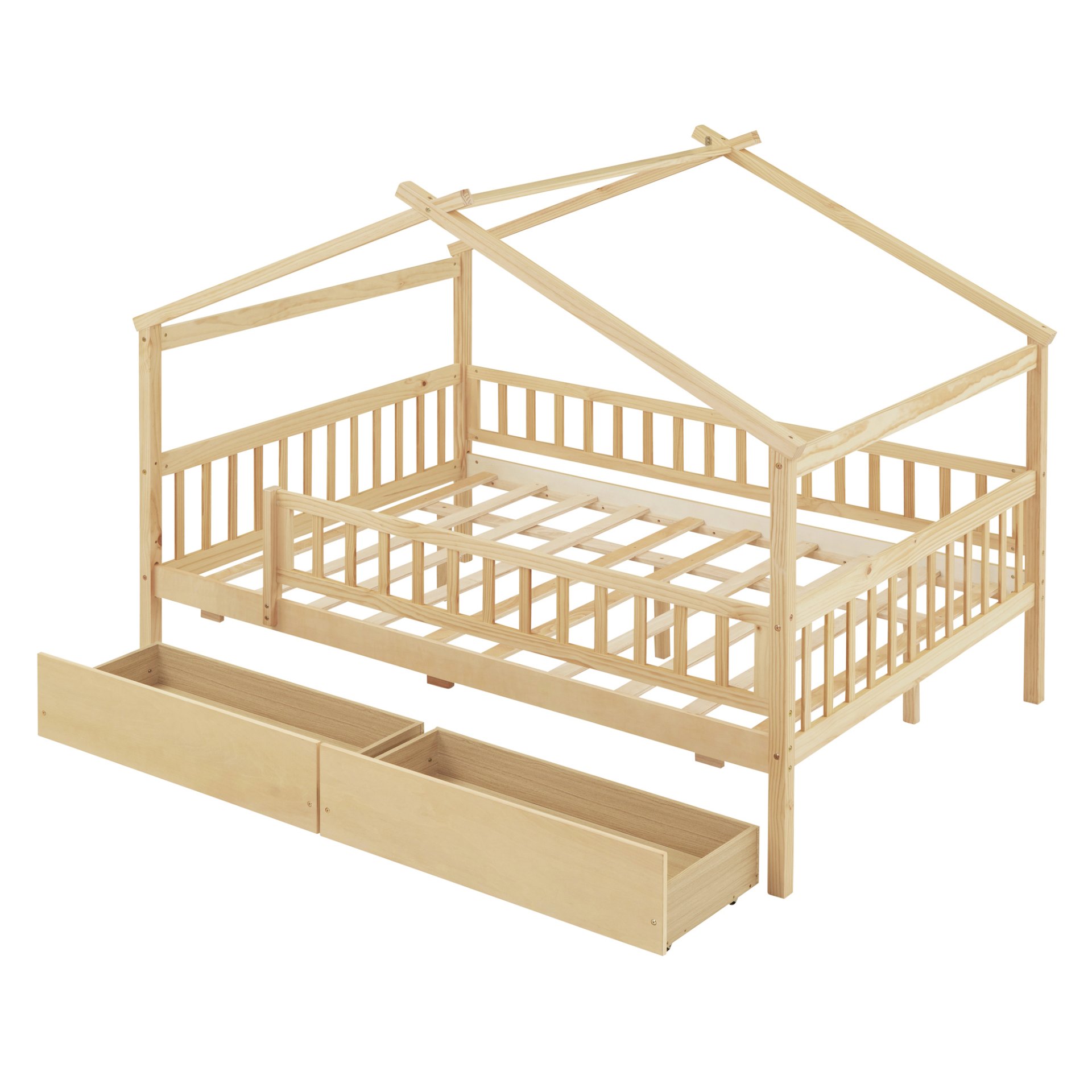 Spacious Storage: The wooden house platform bed includes two built-in drawers, providing ample storage for clothes and toys. This design maximizes space while helping your child develop good organization habits, making it a perfect space-saving solution.