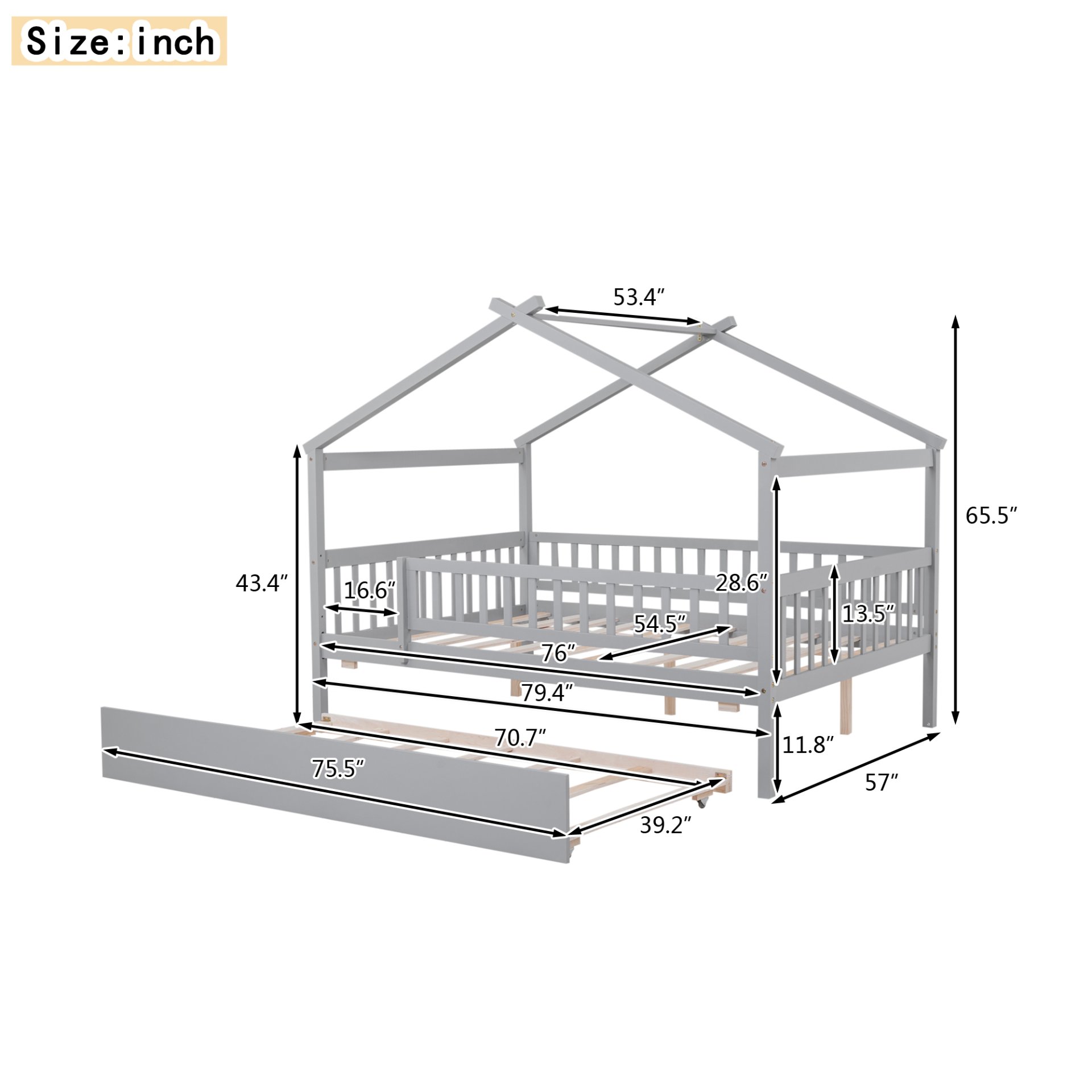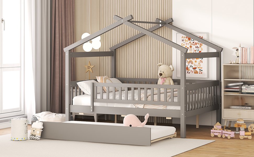 Spacious Storage: The wooden house platform bed with a trundle offers extra sleeping space for sleepovers. Simply roll it out when needed and tuck it away when not in use, making it a perfect space-saving solution.