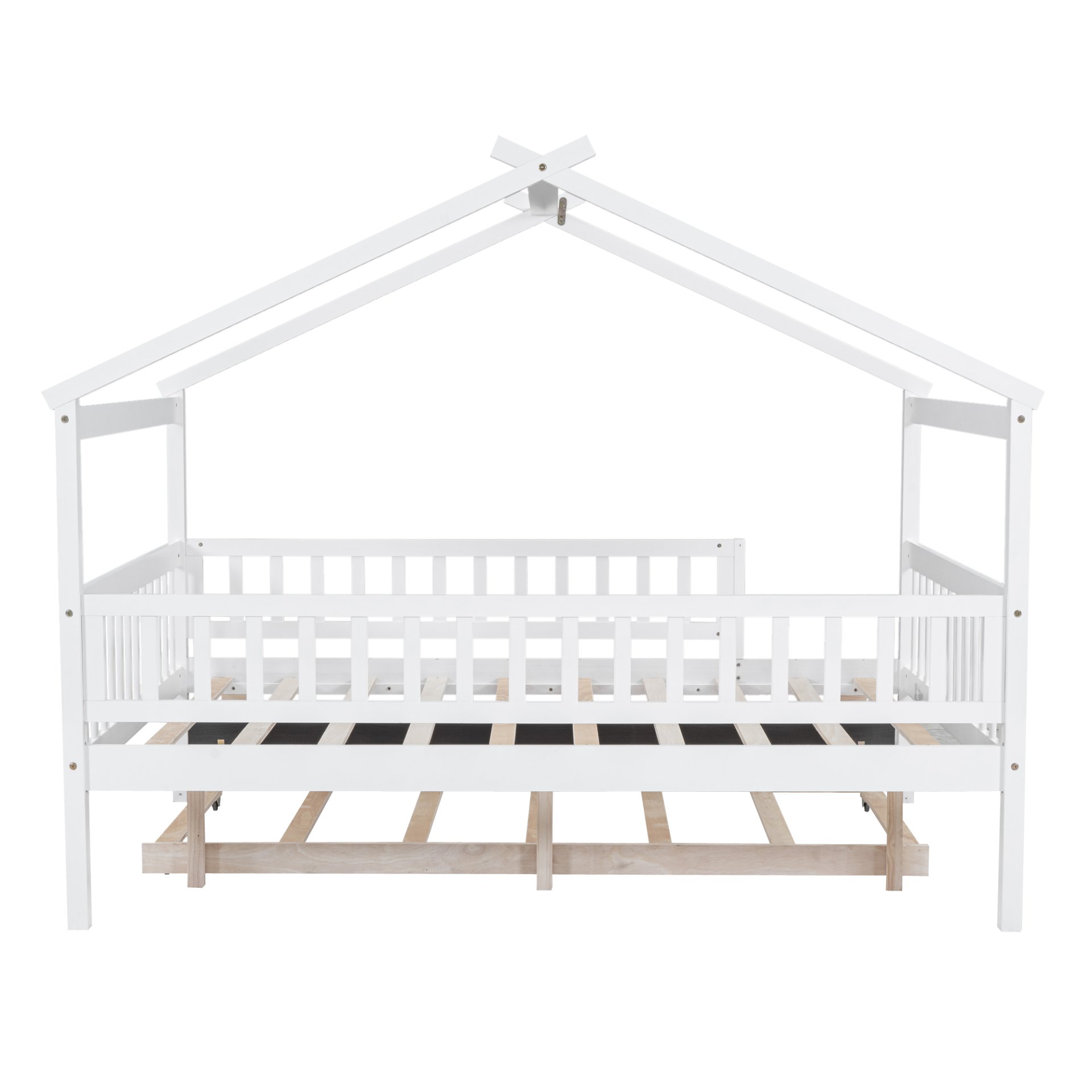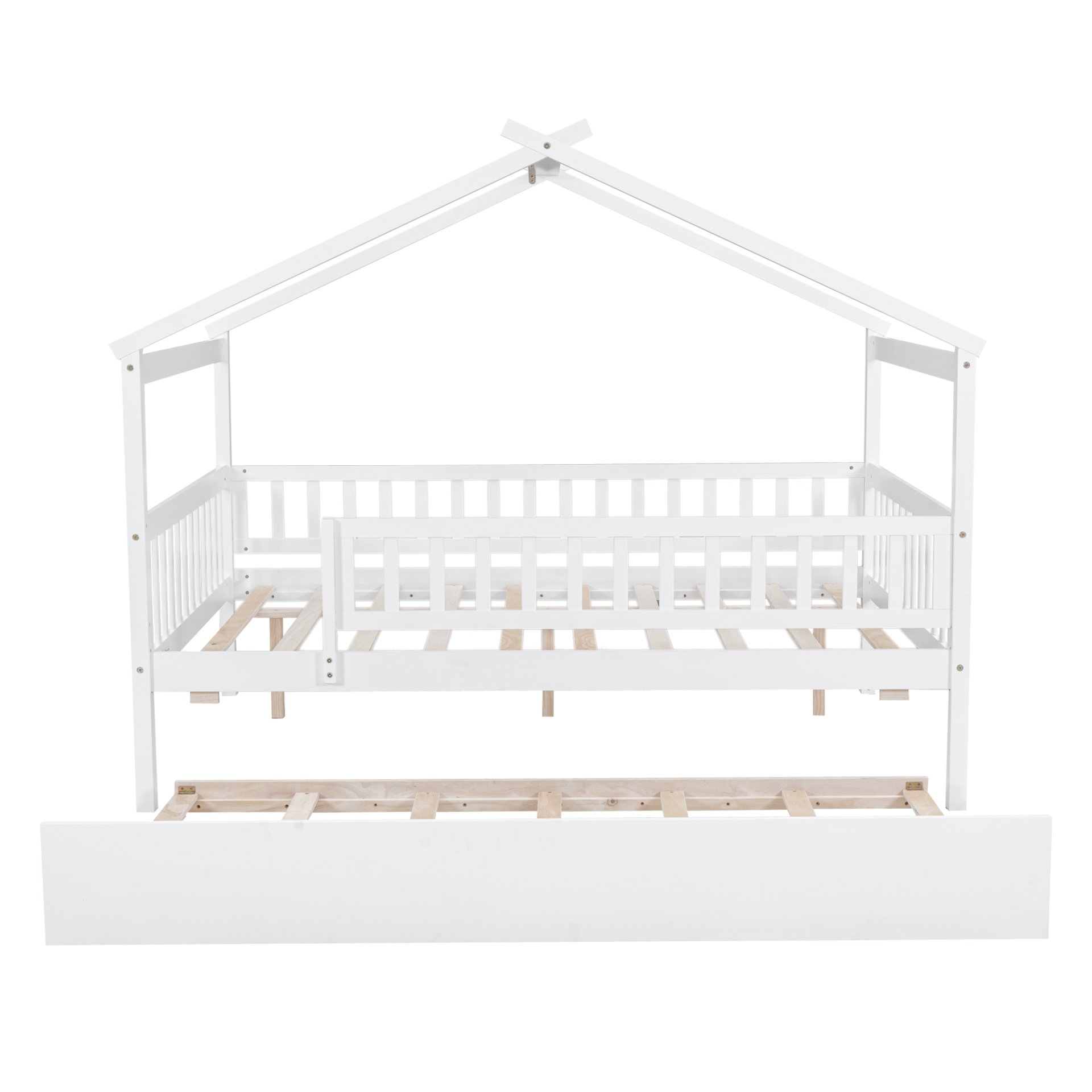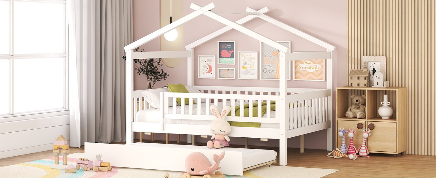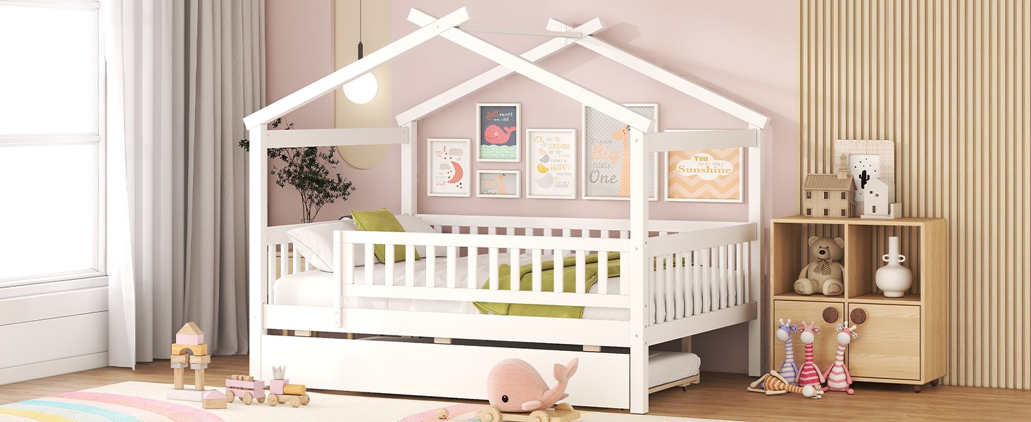 Spacious Storage: The wooden house platform bed with a trundle offers extra sleeping space for sleepovers. Simply roll it out when needed and tuck it away when not in use, making it a perfect space-saving solution.