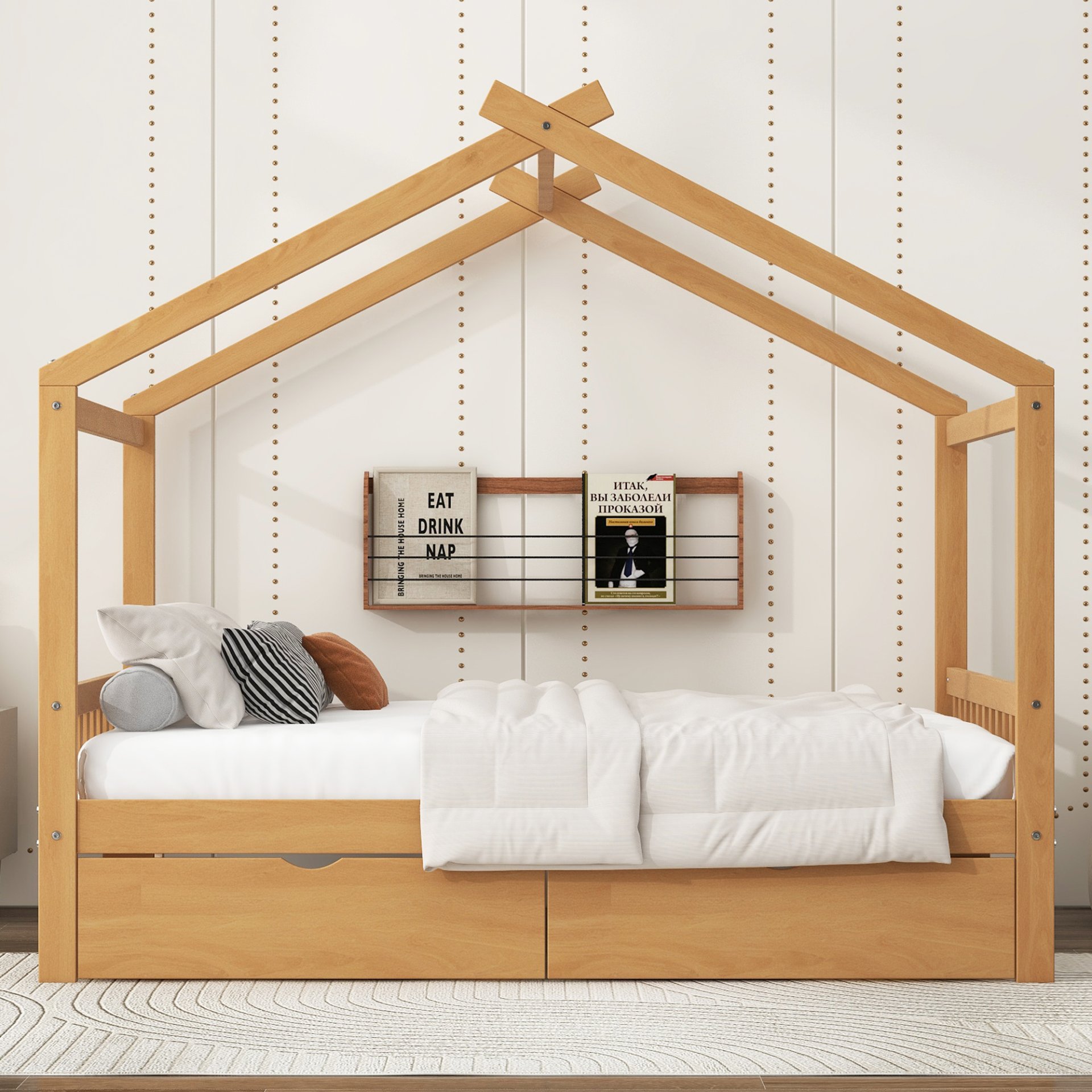 • Sleek Design: Unique house-shaped frame adds whimsy and modern charm to any bedroom.