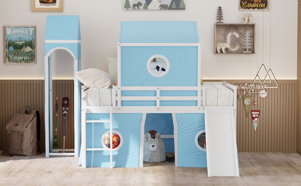 We provide three installation options for the tower—it can be placed on the left side, right side, or even on the slide. Choose the most suitable configuration to match your bedroom design. The castle-like bed with window designs creates a fun and adorable space, doubling as both a comfortable sleeping area and a playful zone.