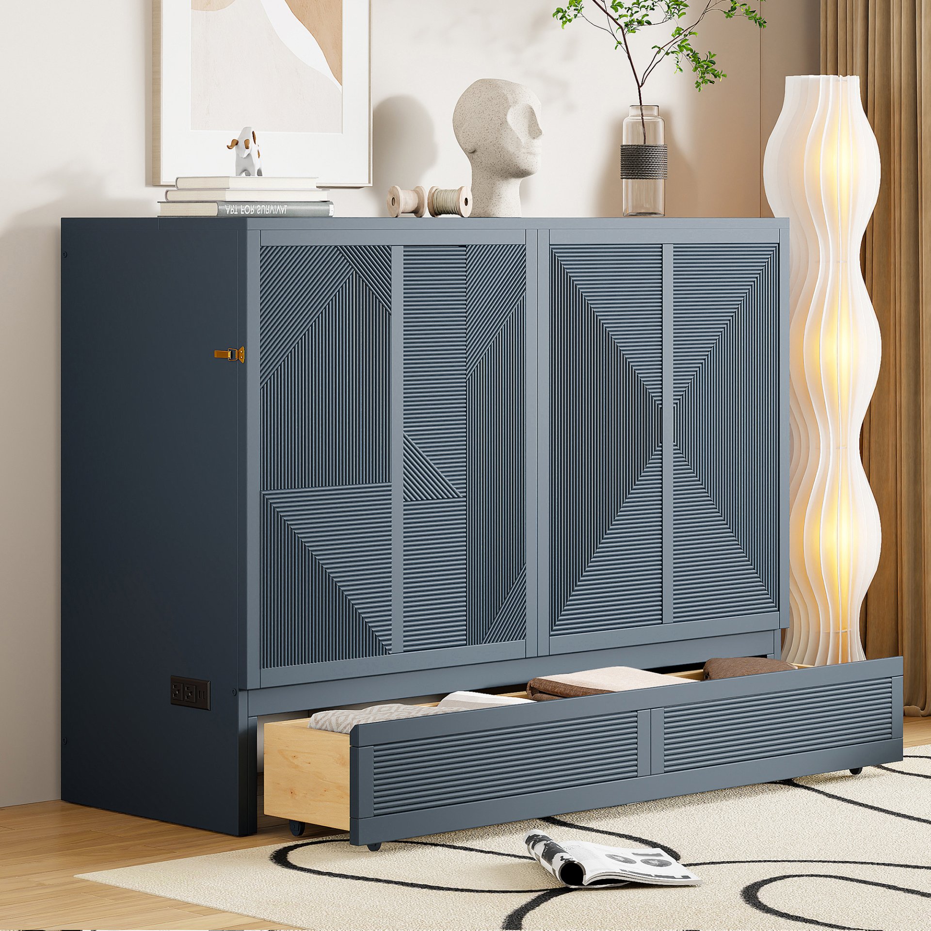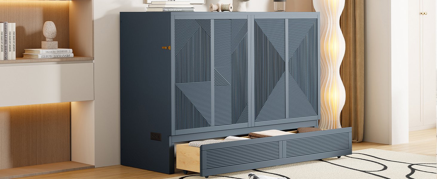 Functional Storage: Featuring a built-in drawer in cabinet mode, this Murphy bed provides extra storage space for essentials. The cabinet is designed to neatly store a tri-fold mattress (up to 6 inches thick).