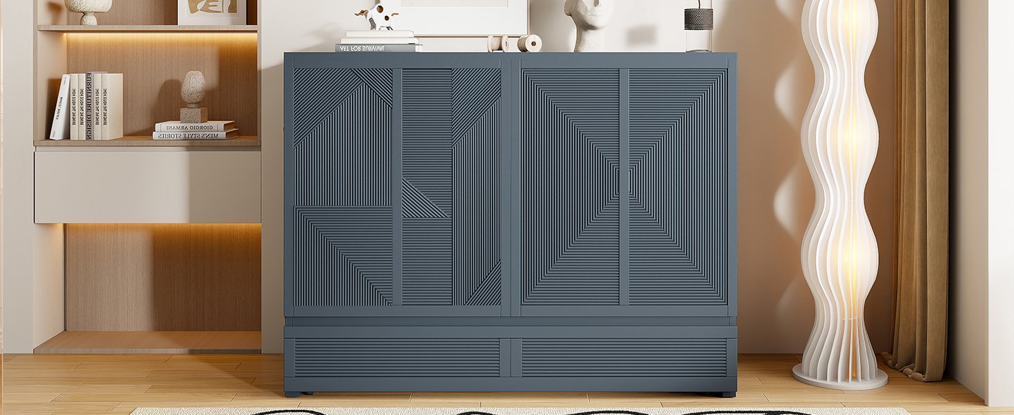 Stylish Design: With striped paneling and a unique decorative surface, this bed is a chic addition to any room, blending practicality with aesthetic appeal.