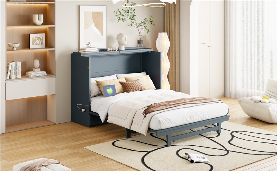 Effortless Usability: Designed for convenience, this Murphy bed easily folds into a compact cabinet with smooth-rolling wheels, allowing you to transform your room in minutes. Equipped with USB charging ports on the side, it keeps your devices charged and within reach, adding a tech-friendly touch to your space.