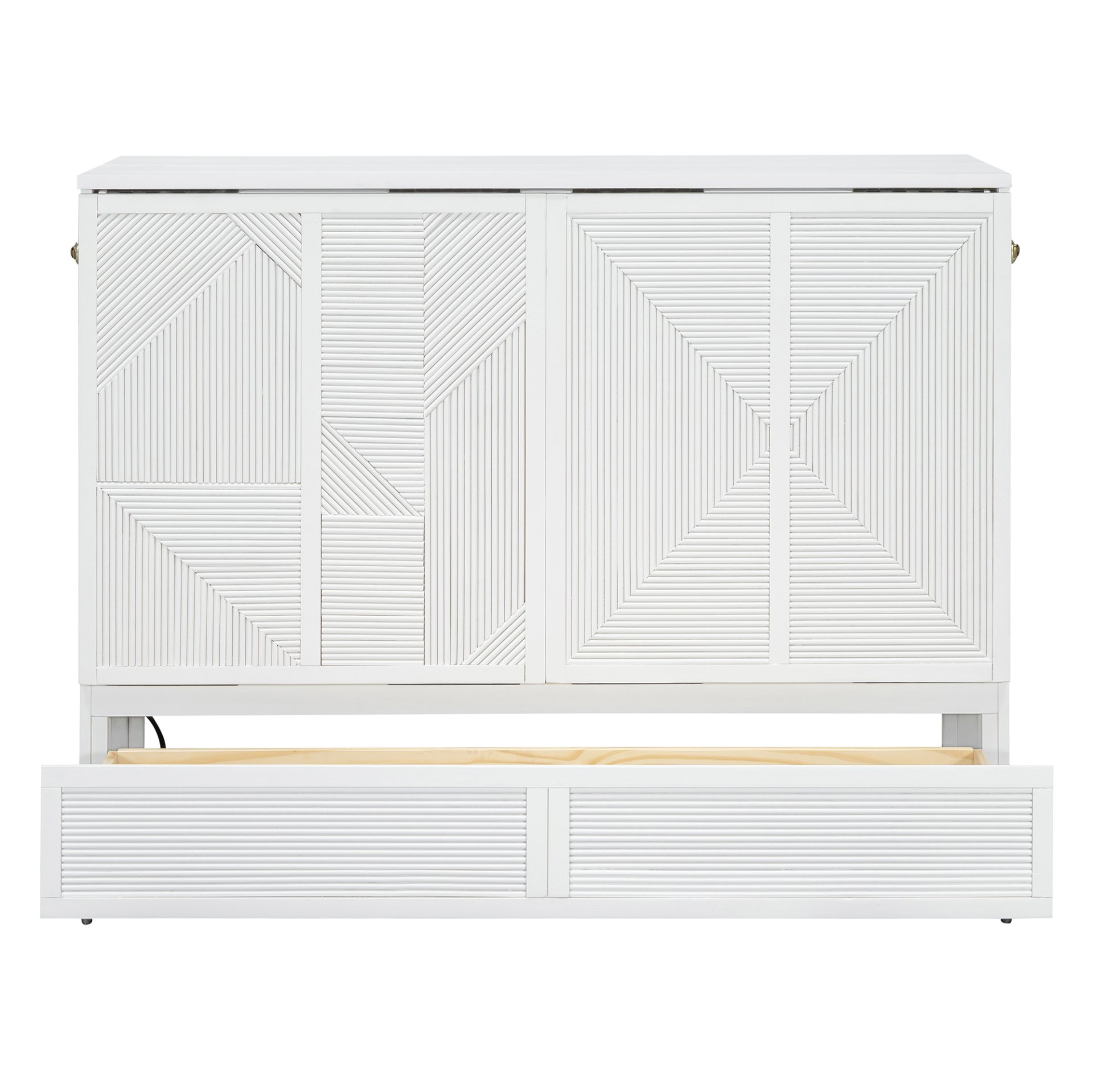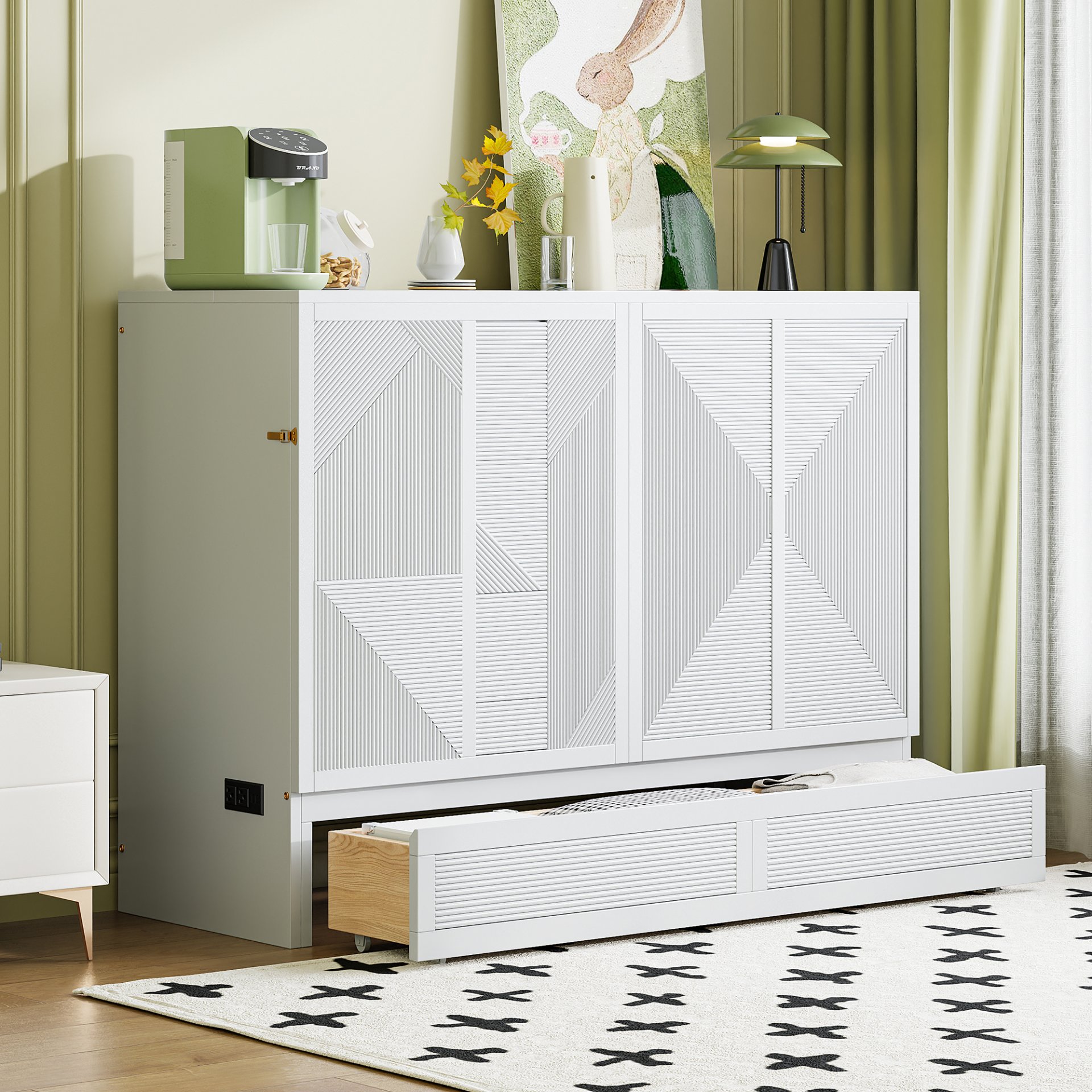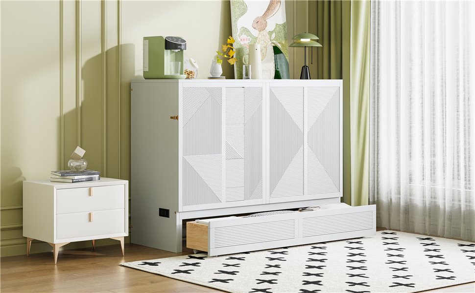 Functional Storage: Featuring a built-in drawer in cabinet mode, this Murphy bed provides extra storage space for essentials. The cabinet is designed to neatly store a tri-fold mattress (up to 6 inches thick).