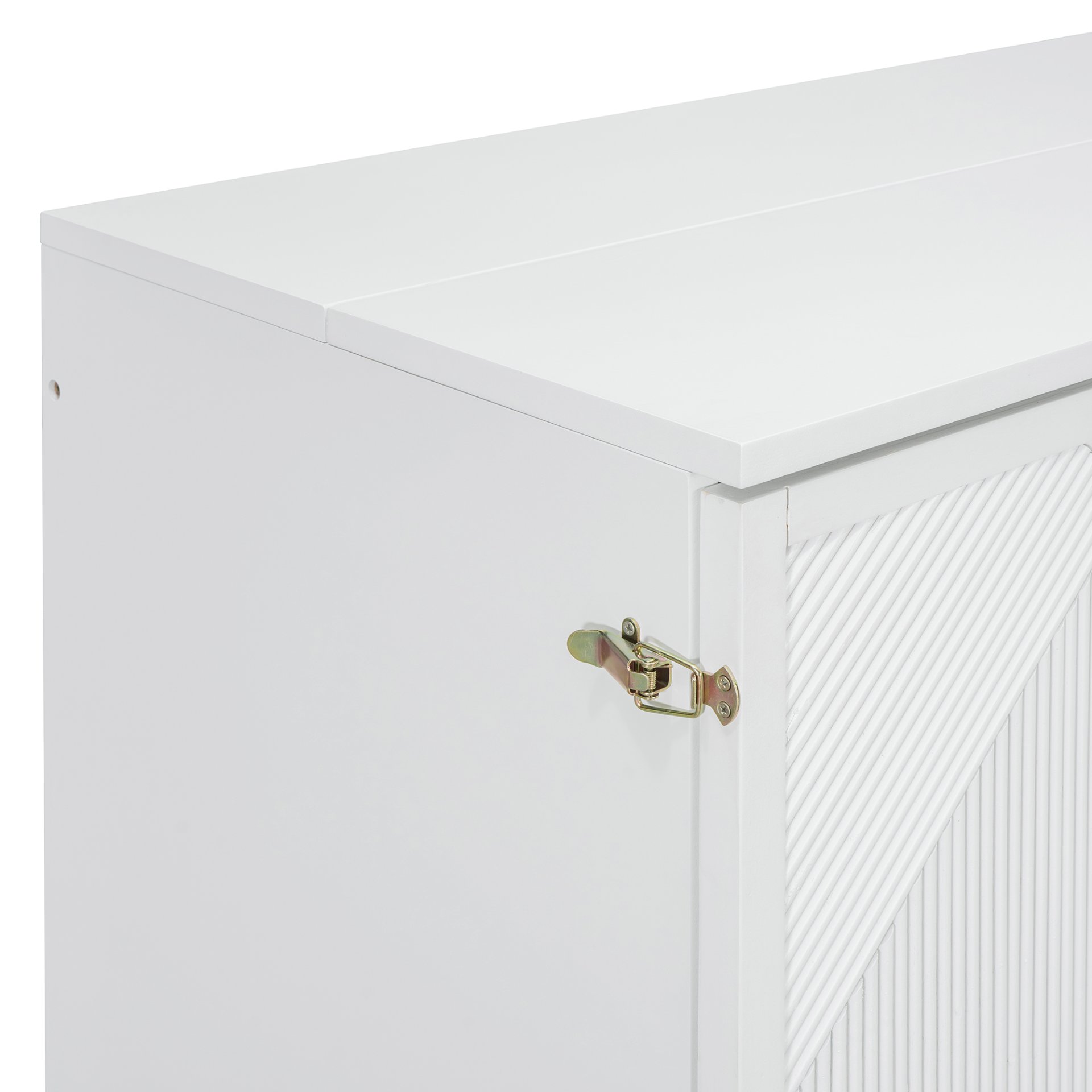 Stylish Design: With striped paneling and a unique decorative surface, this bed is a chic addition to any room, blending practicality with aesthetic appeal.