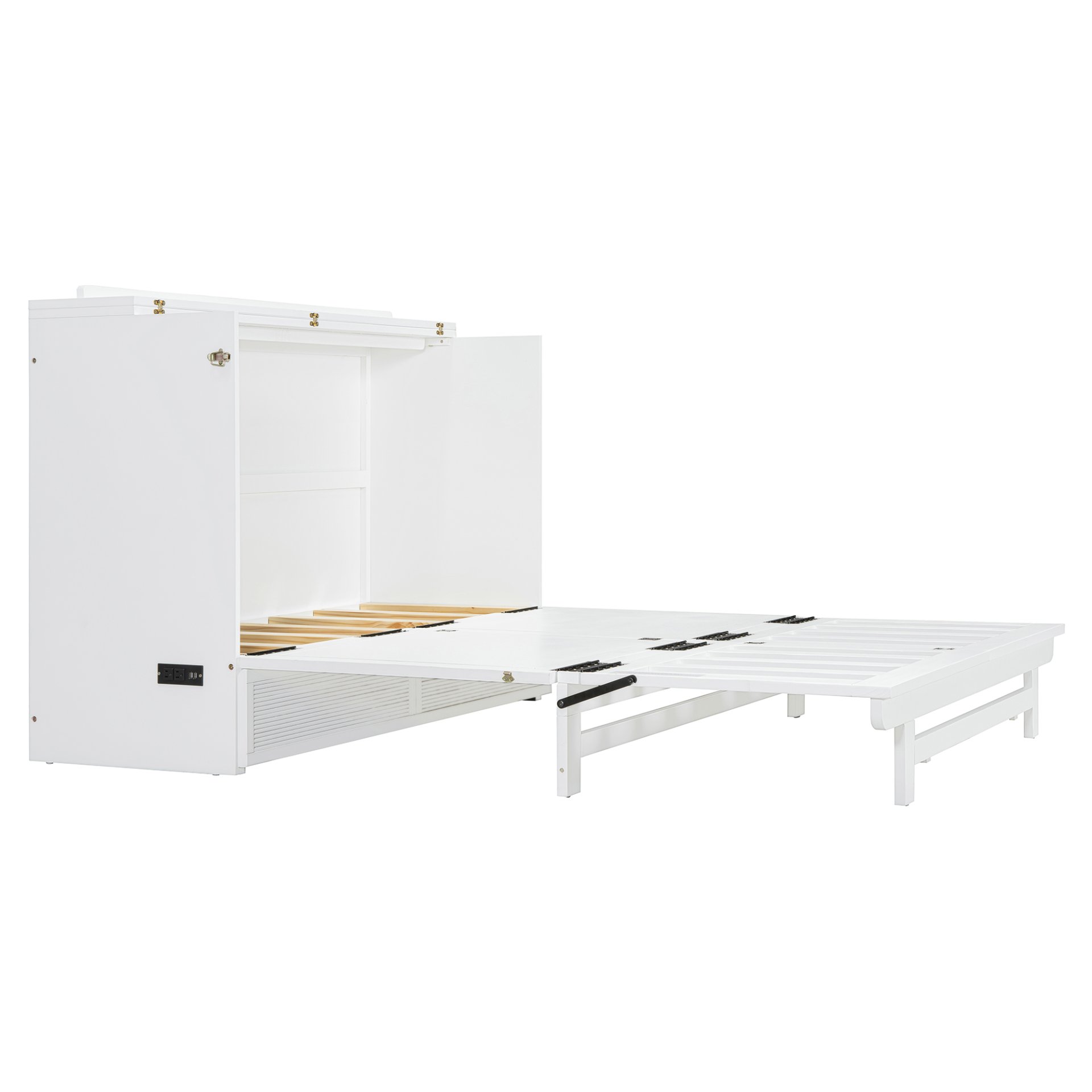 Effortless Usability: Designed for convenience, this Murphy bed easily folds into a compact cabinet with smooth-rolling wheels, allowing you to transform your room in minutes. Equipped with USB charging ports on the side, it keeps your devices charged and within reach, adding a tech-friendly touch to your space.