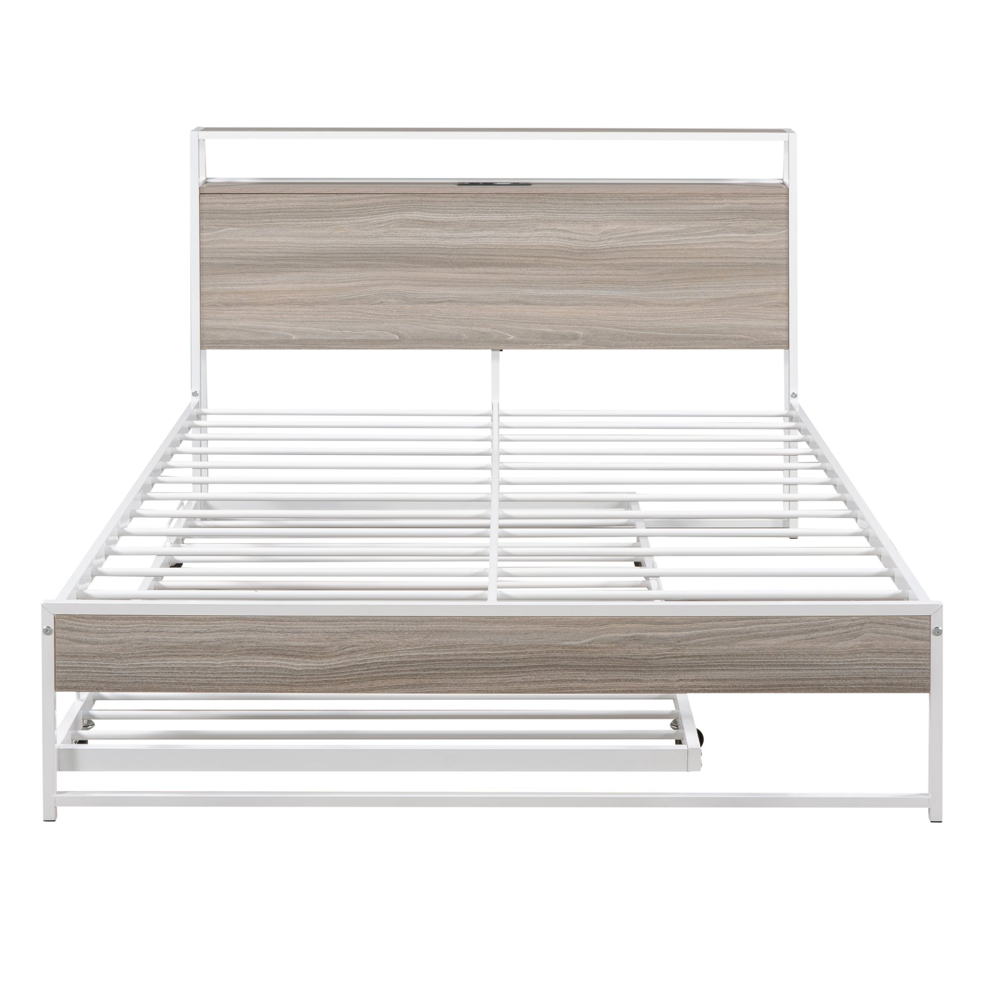 No Box Spring Required: This metal bed frame is compatible with Full-size mattresses (mattress not included) and does not require a box spring. The 13 bed slats provide excellent mattress support. Weight capacity: Bed: 350lbs. Trundle: 350lbs.