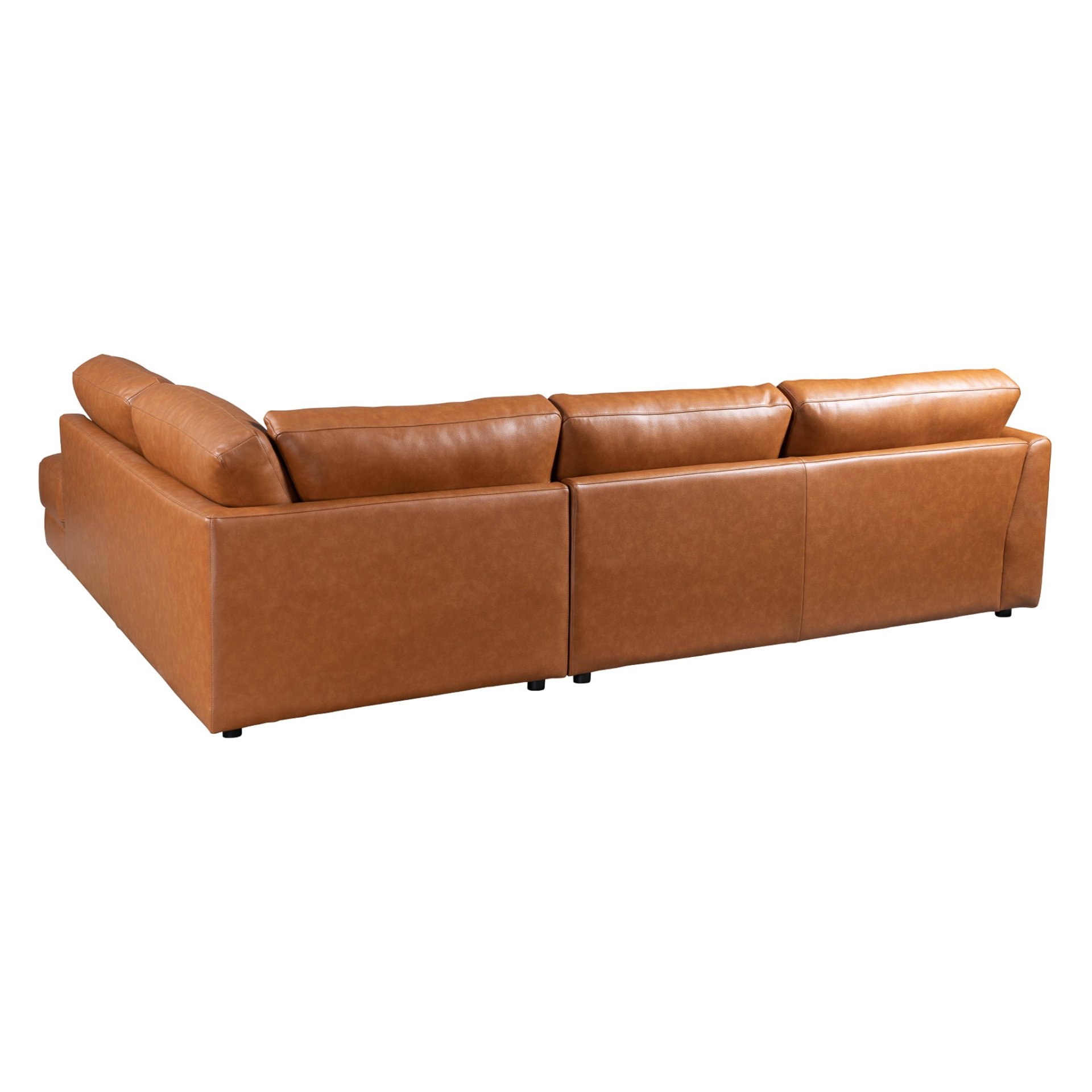 • Luxurious Leather Upholstery: Upholstered in luxurious cognac genuine leather, this sectional offers an elegant and comfortable seating experience, enhancing the aesthetic of your interior with its rich color and texture.