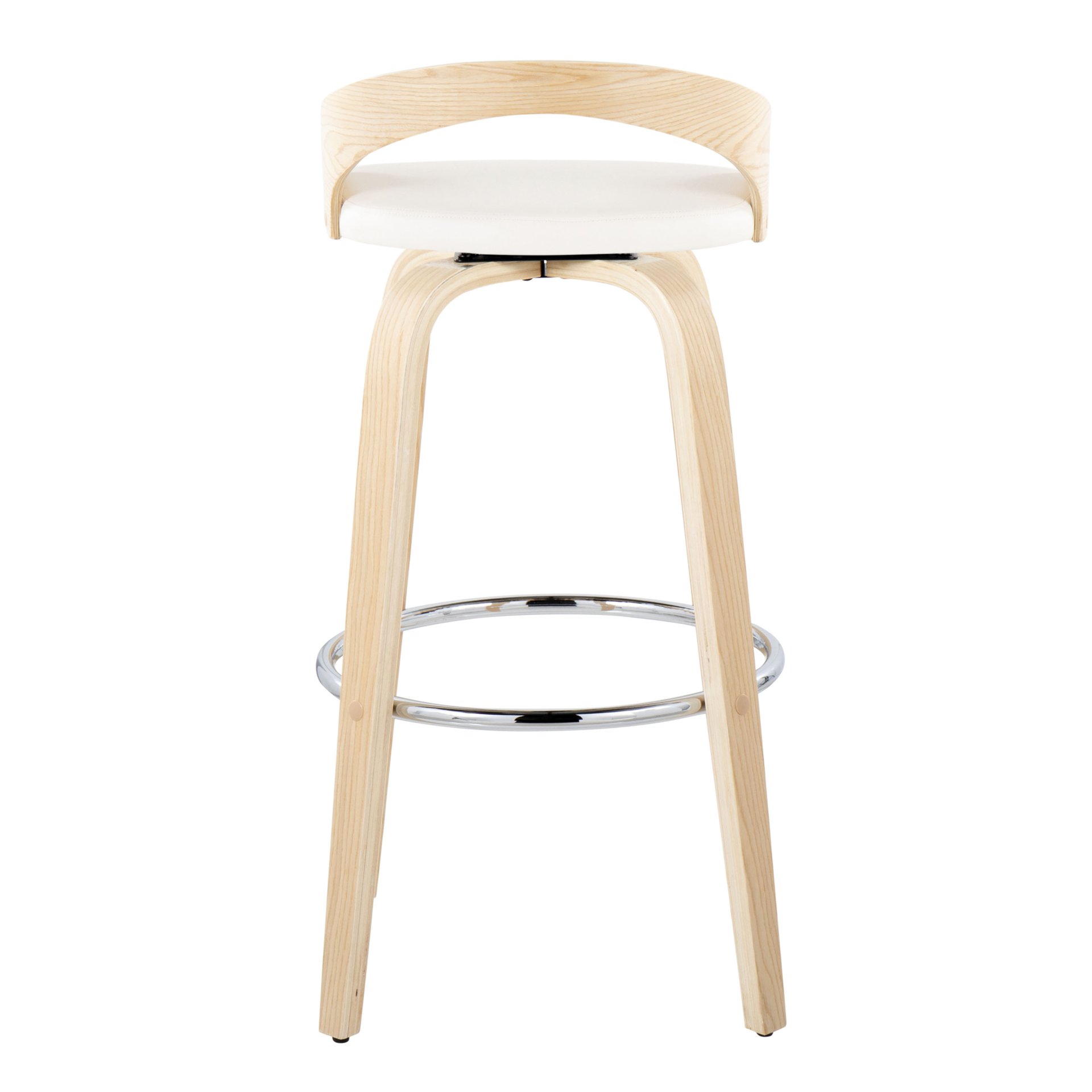 • Material & Finish: Upholstered in stylish faux leather, the barstool is available in various color options. It features bent wood legs complemented by a round chrome metal footrest, adding a contemporary touch to any space.