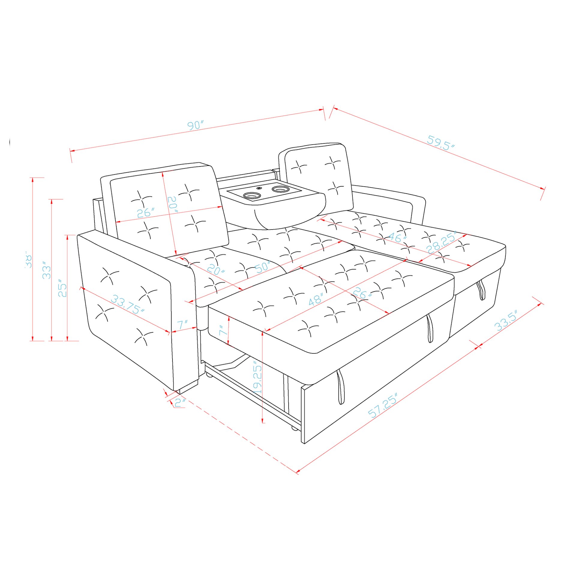 | Dimensions | 90.00 × 60.00 × 38.00 in |