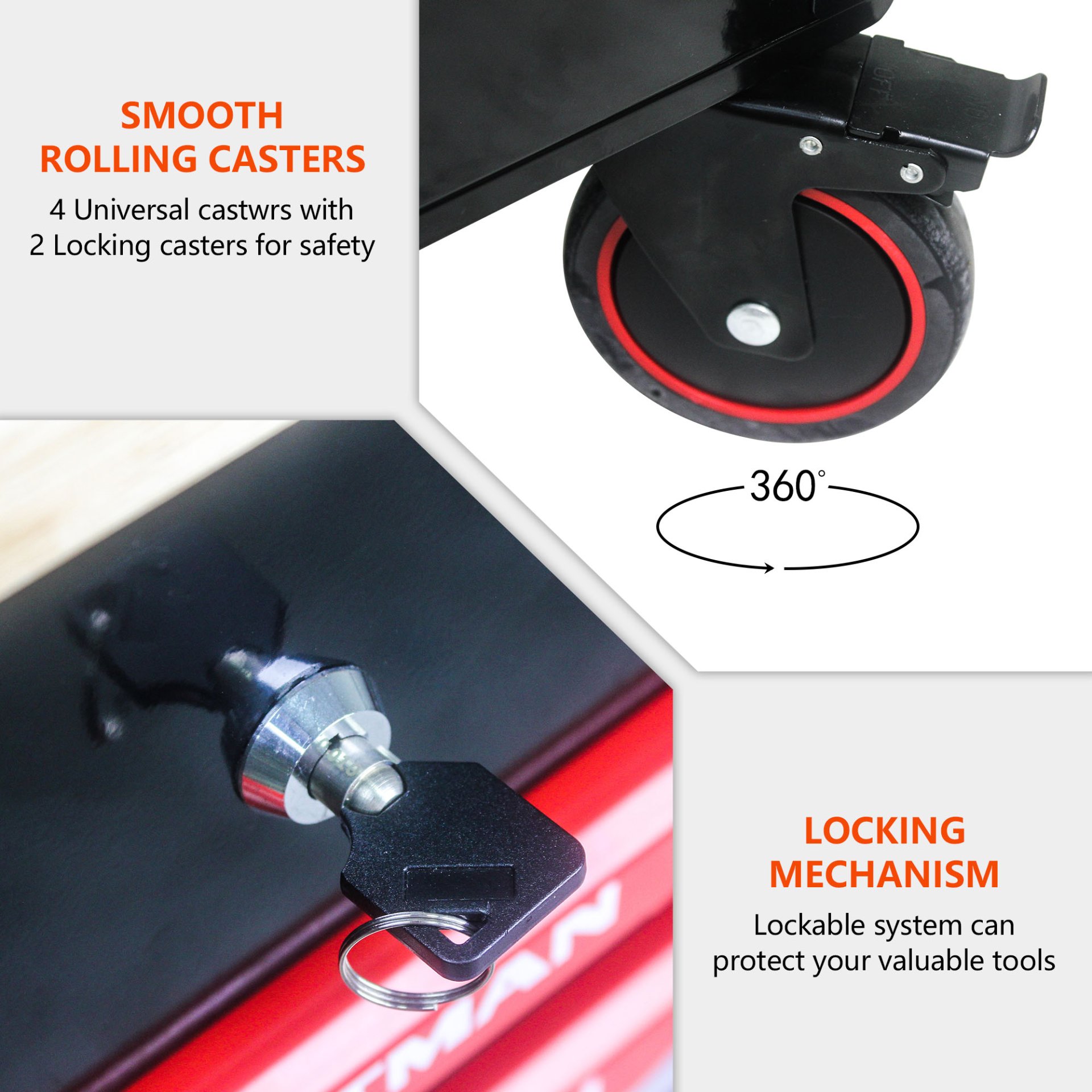 • Secure Locking System: Key-locking mechanism prevents unauthorized access to tools and equipment for added security.