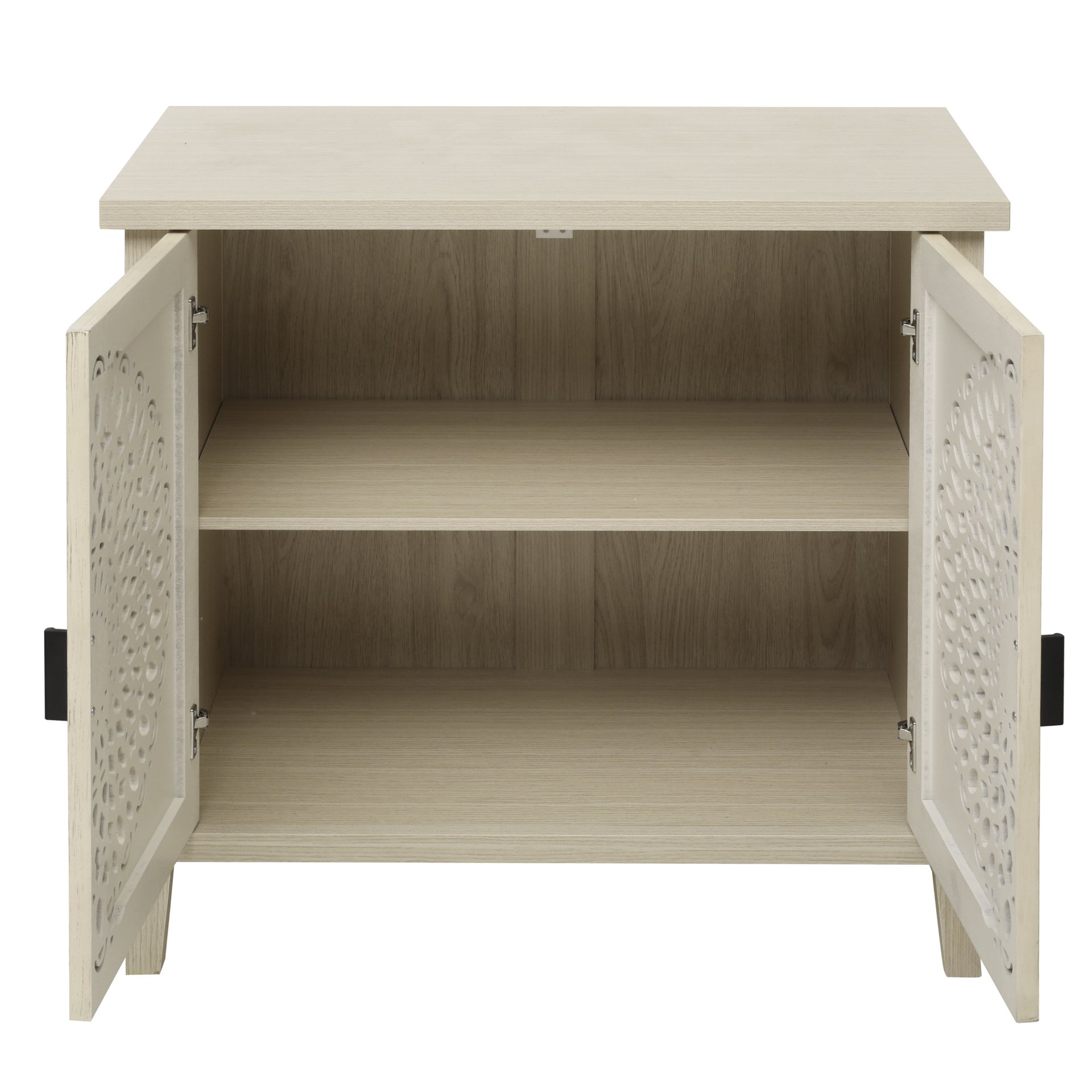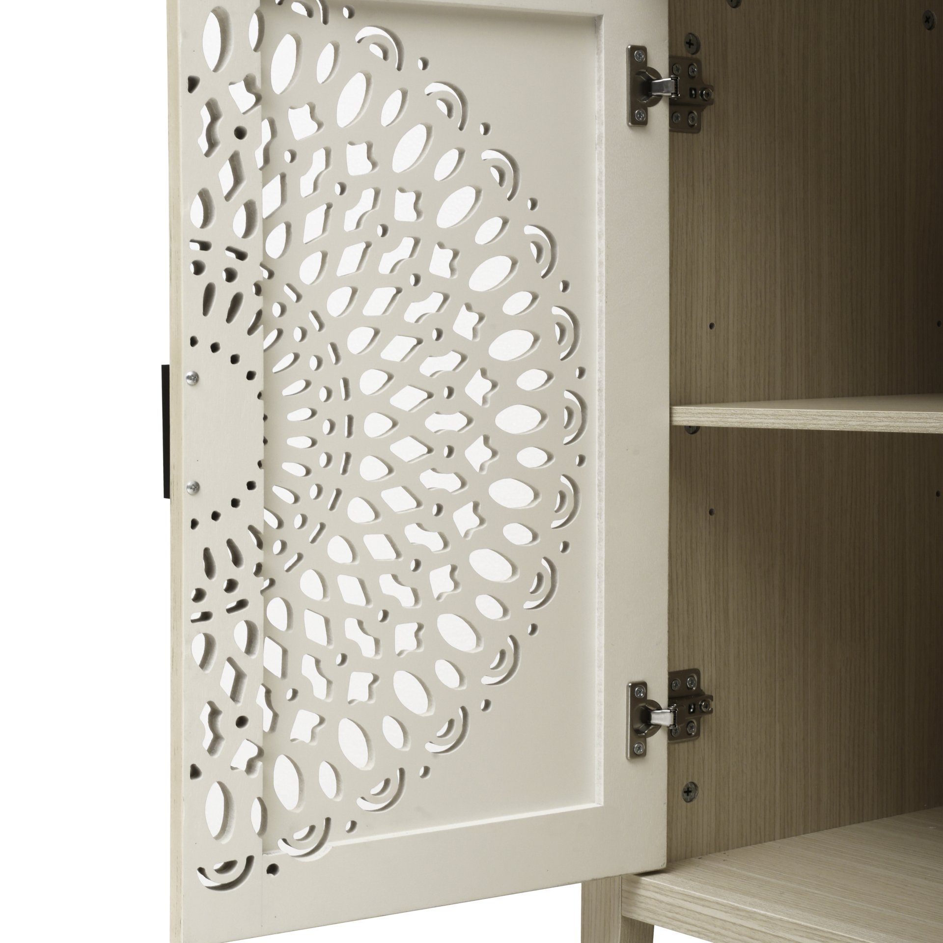 • Exquisite Design: The cabinet features a beautifully carved hollow pattern on the finish, providing both aesthetic appeal and improved breathability, allowing for easy viewing of your stored items.