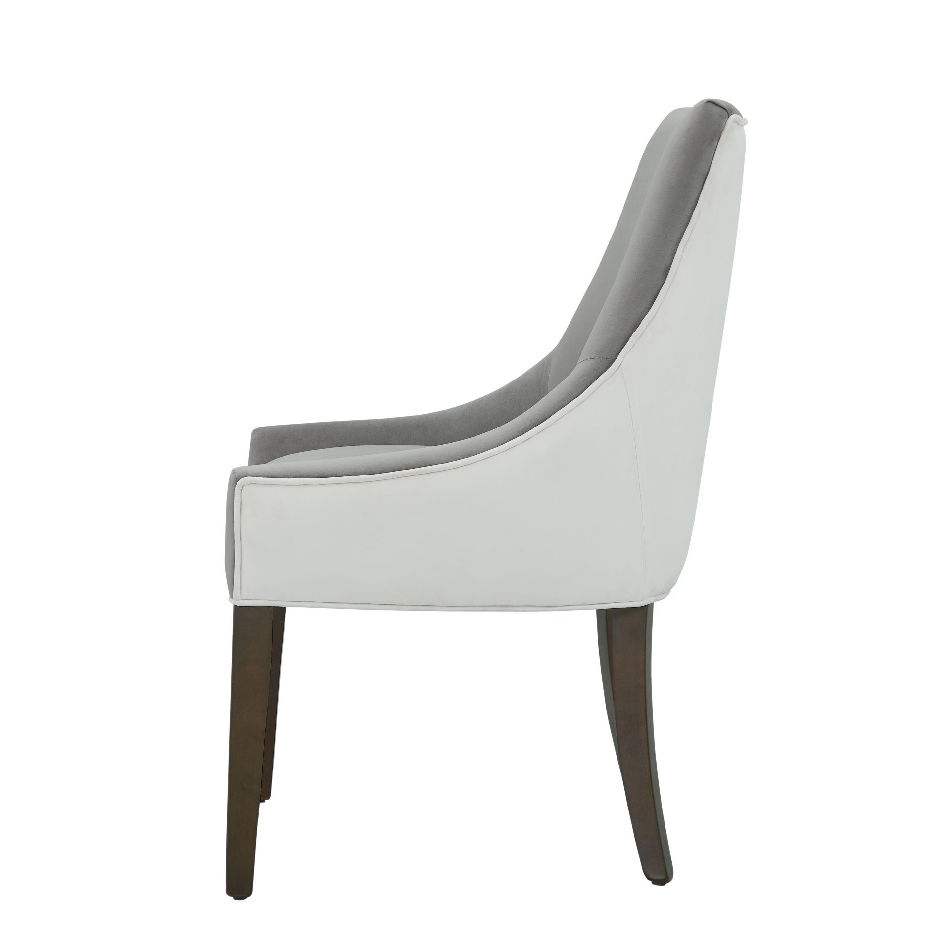 • Elegant Design: Features a sophisticated two-tone fabric with sloped arms and wrap-around back.