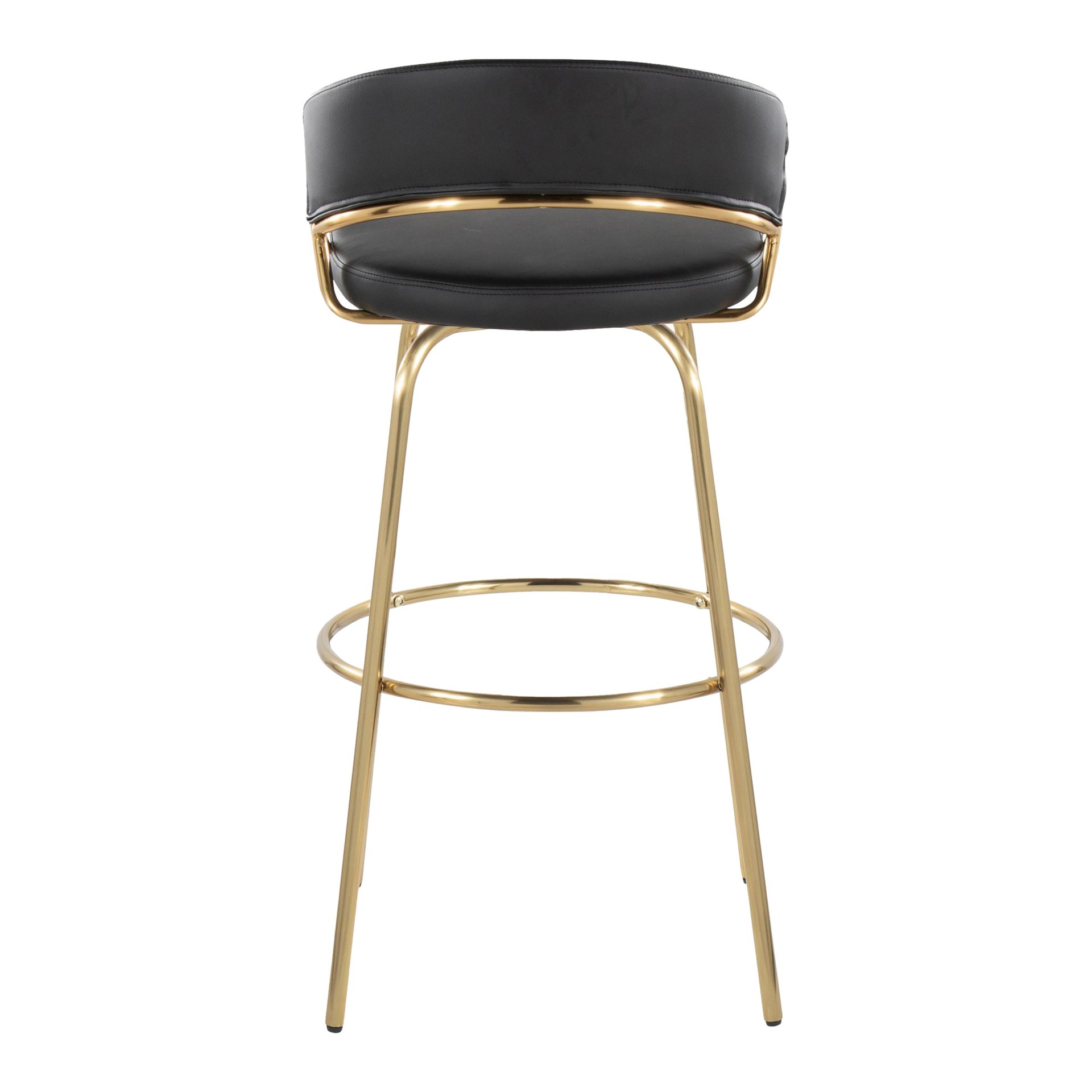 • Premium Features: Features include a contemporary styling, a sleek gold metal frame, stylish faux leather upholstery, and a round gold metal footrest, enhancing both aesthetics and comfort.