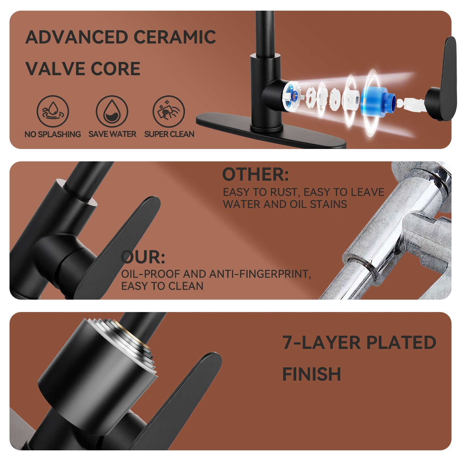 • Premium 304 Stainless Steel Construction: Resistant to rust, fingerprints, and oil with a long-lasting matte black finish.
