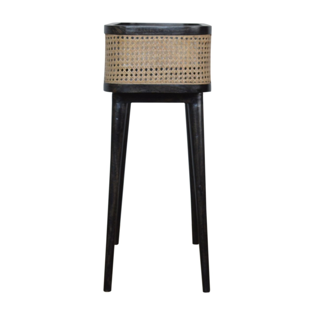 • Larissa Carbon Black Tray Table - This tray table has been beautifully made from 100% solid mango wood in an ash black finish with a hand-woven rattan top. Featuring rounded corners, the table can be used in a variety of settings such as the bedroom, hallway or living room. Perfect for storing flowers, photo frames etc.