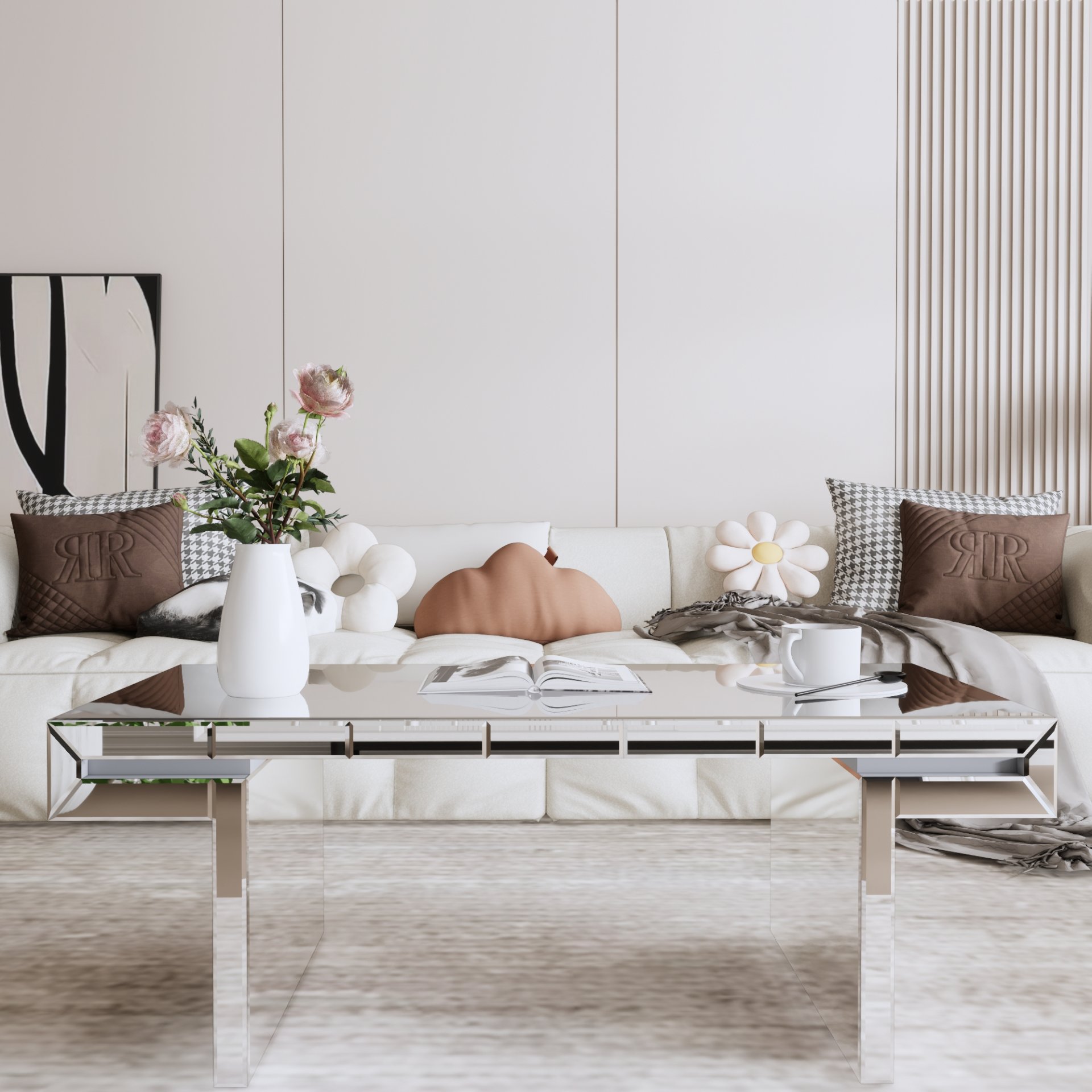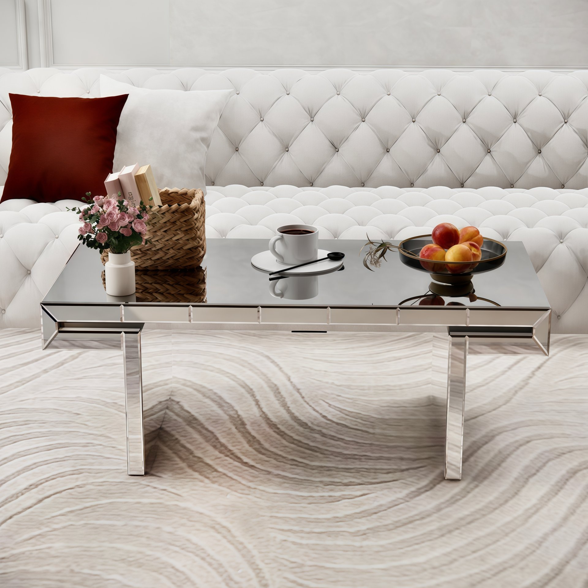• Sleek Light Luxury Design: Elevates living rooms with full-body mirrored surfaces and fluted tempered glass accents, complementing glam interiors.