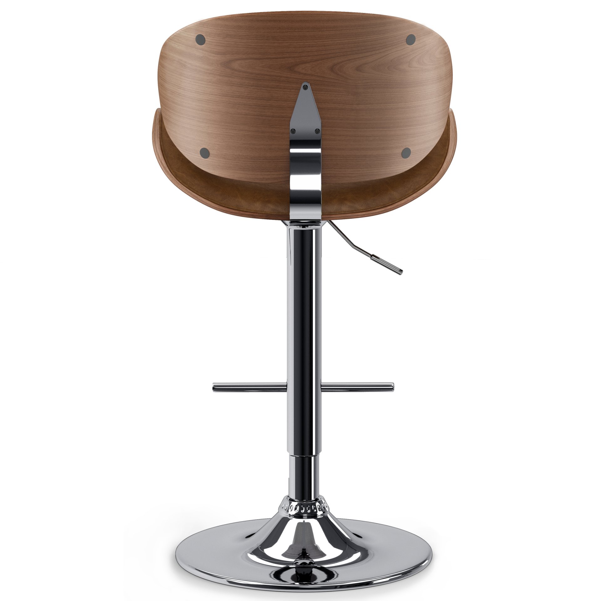 • Features sturdy polished chrome base with 360 degree swivel and footrest. Seat Adjusts from bar to counter height with gas lift