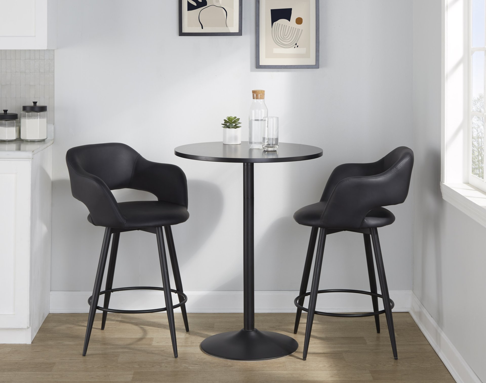 • Quality Materials: Upholstered in stylish faux leather, complemented by tapered metal legs and a round footrest, these stools combine durability with modern aesthetics.