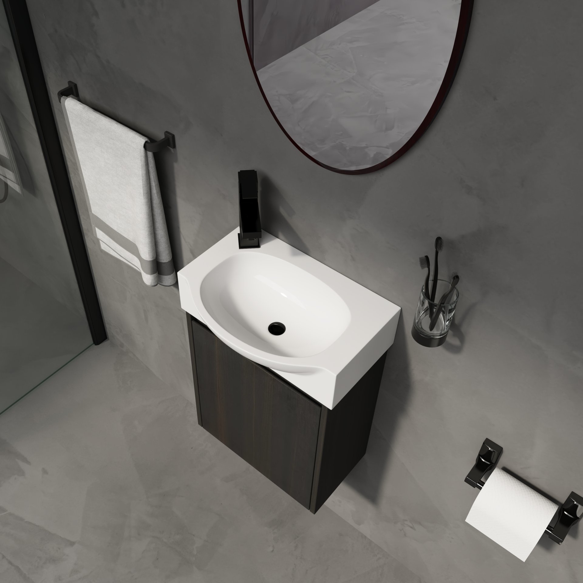 • Stylish Design: The modern black finish and sleek lines of the vanity add a contemporary touch to any small bathroom space.