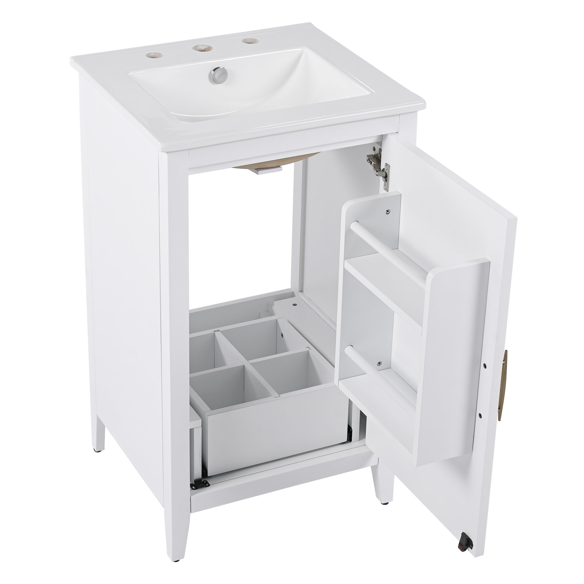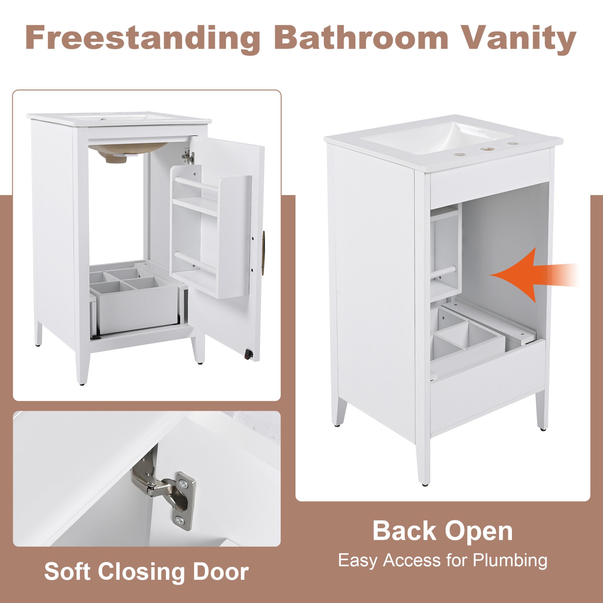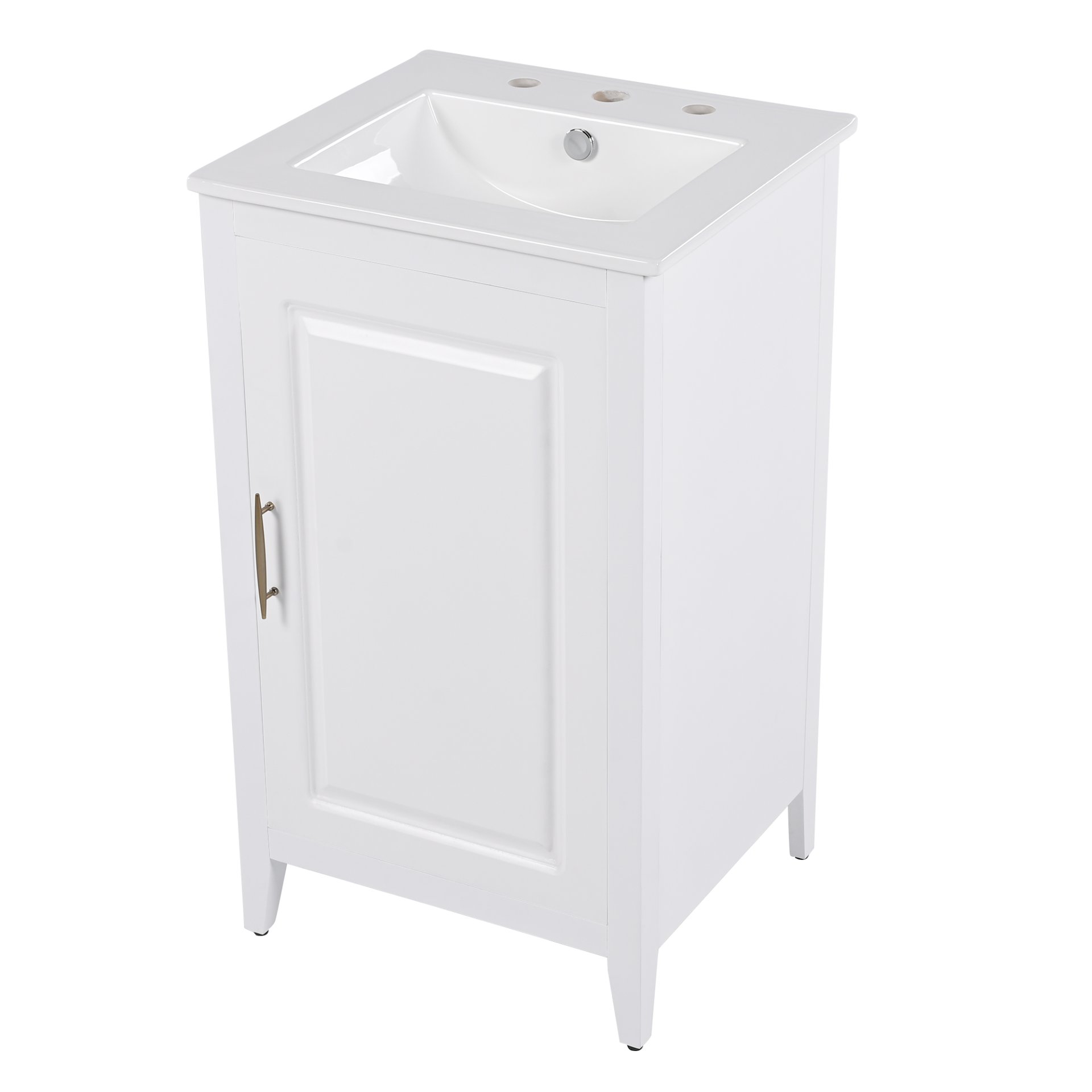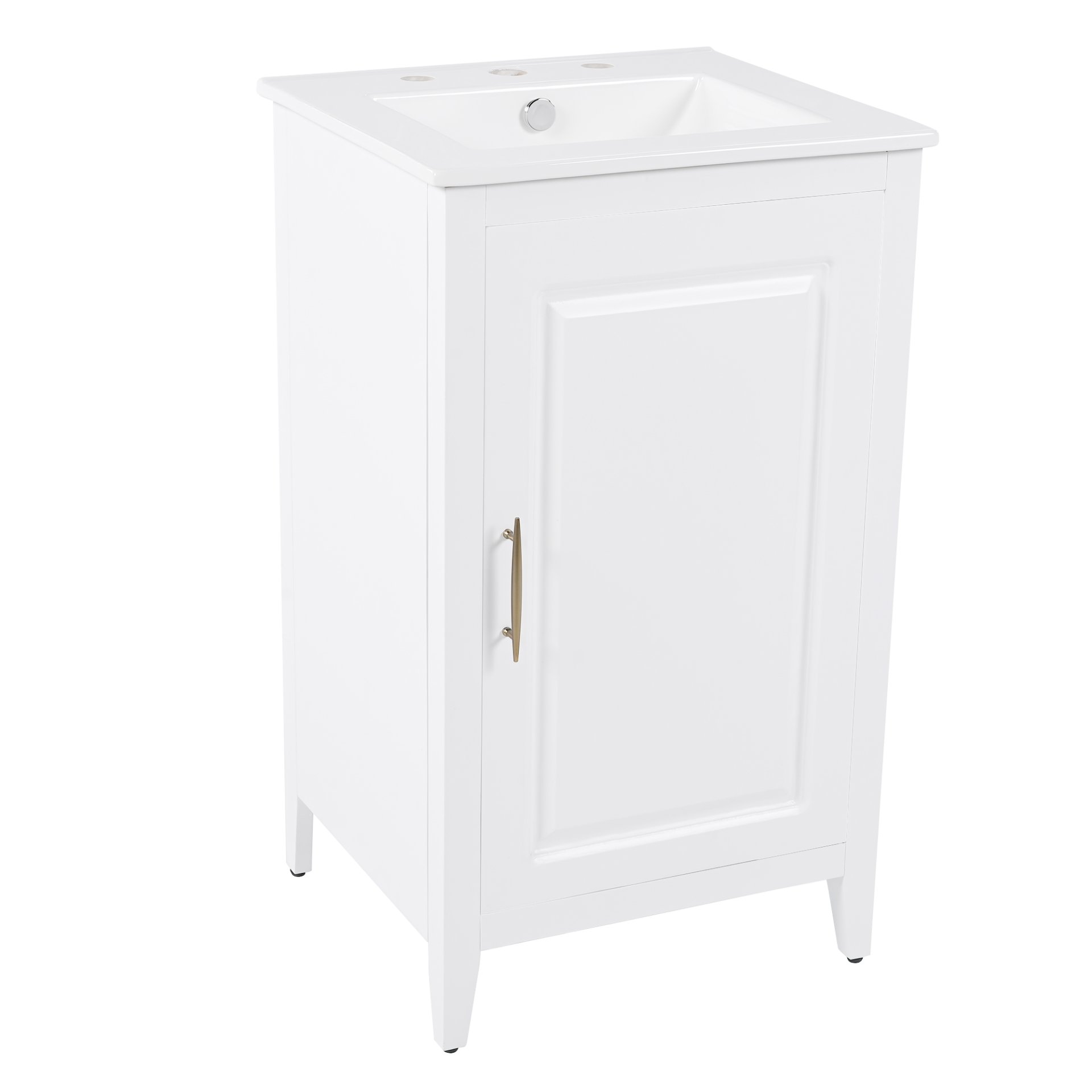 • Smooth Ceramic Sink: Features a solid ceramic sink with a water-proof finish and pre-drilled holes for an 8" faucet(not included).