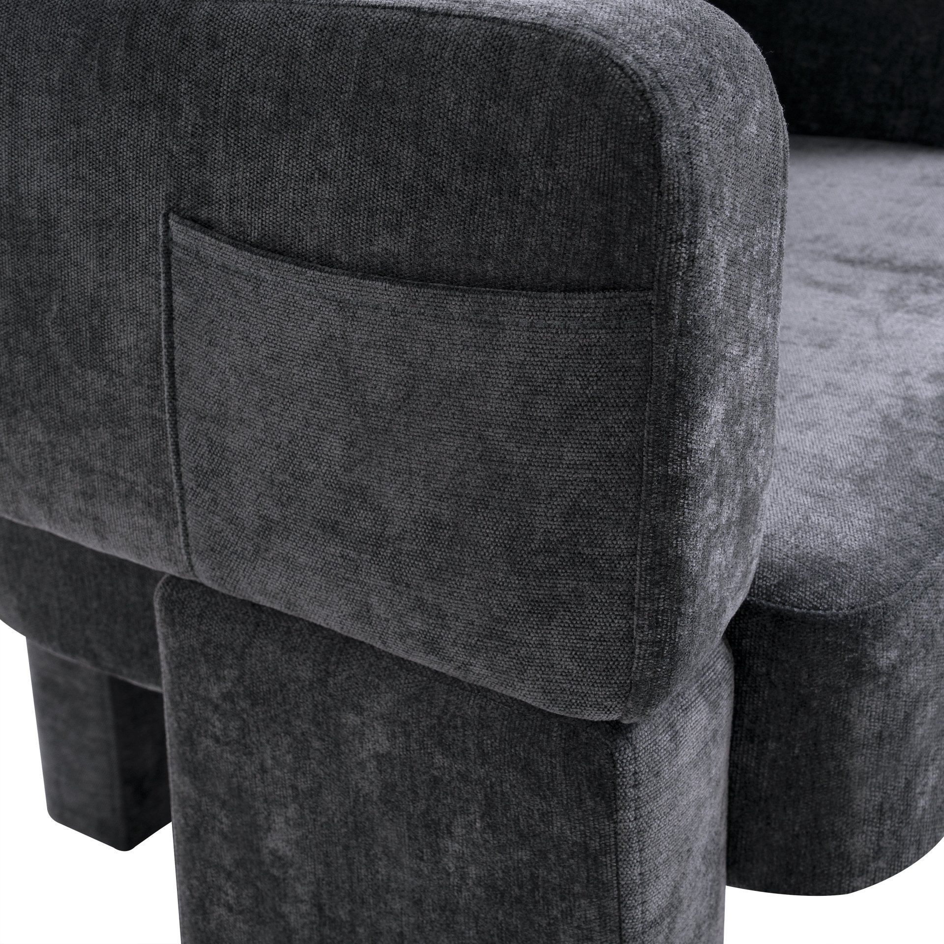 • Comfortable Material: This accent chair is crafted with soft chenille fabric, combining durability with cloud-like comfort. It's the perfect spot to curl up with a book or enjoy your favorite movie.