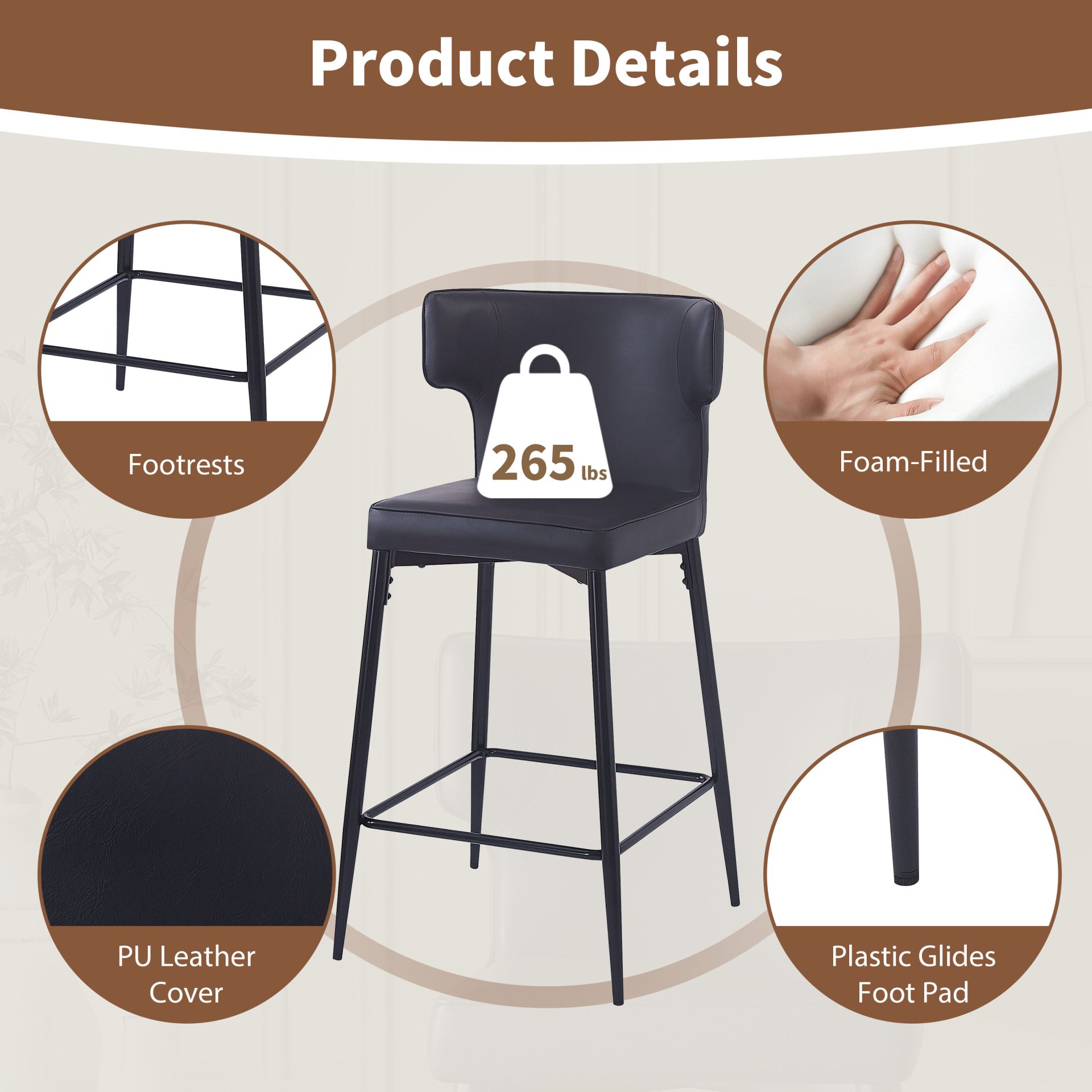 • Durable Build: Sturdy metal frame with a 265 lbs weight capacity per chair, designed for long-lasting use.