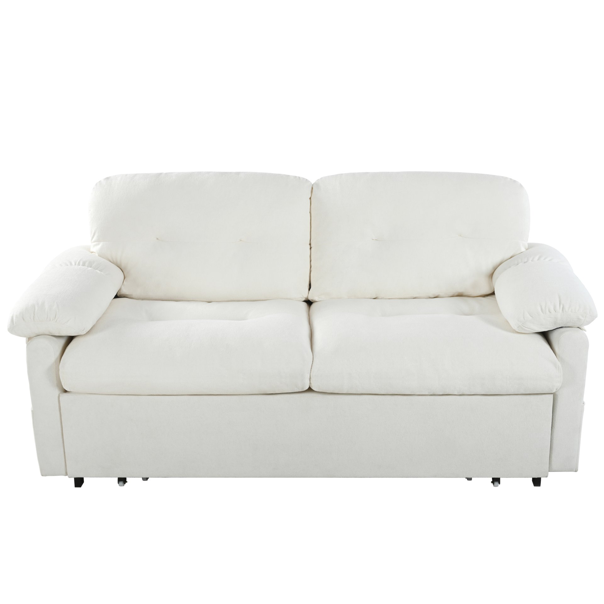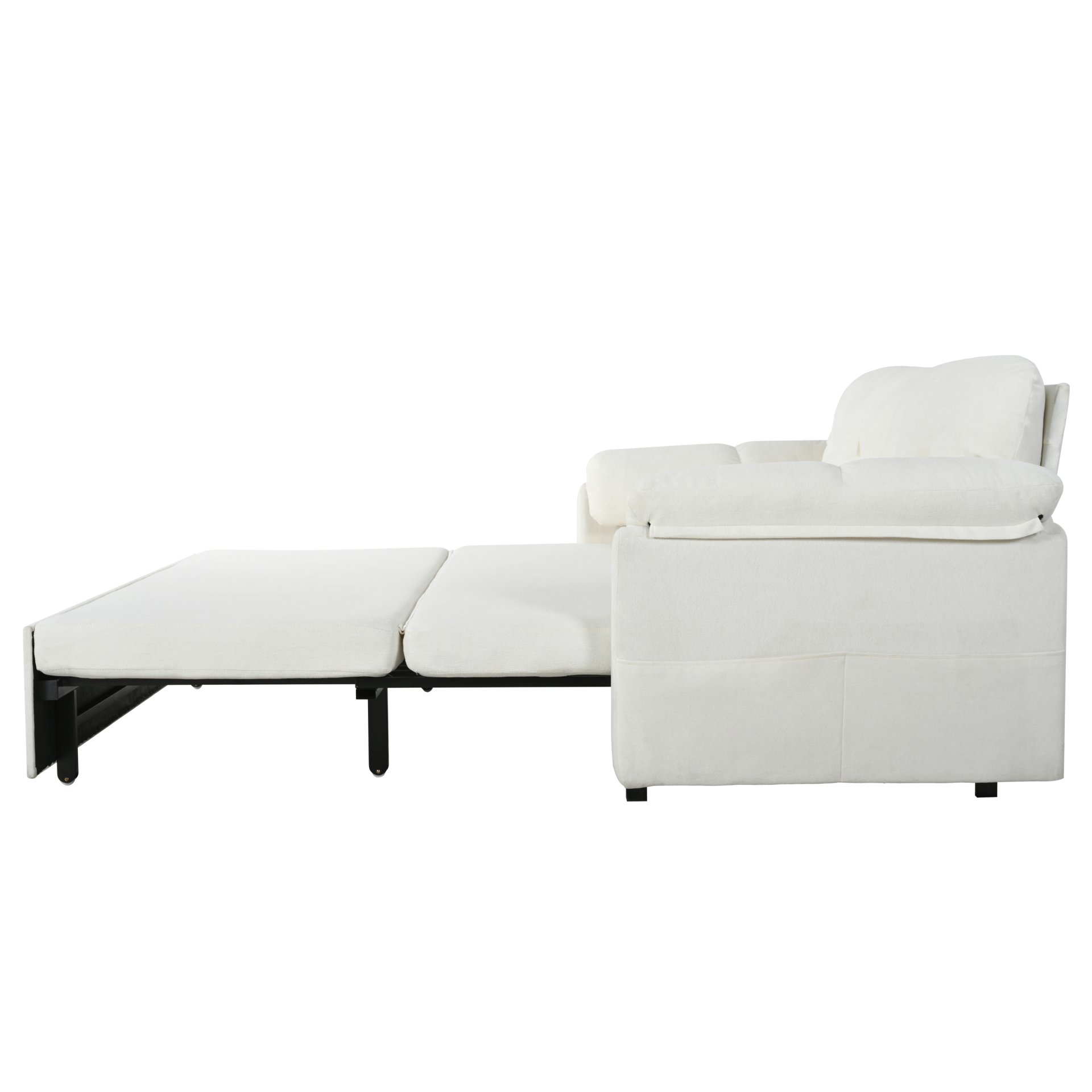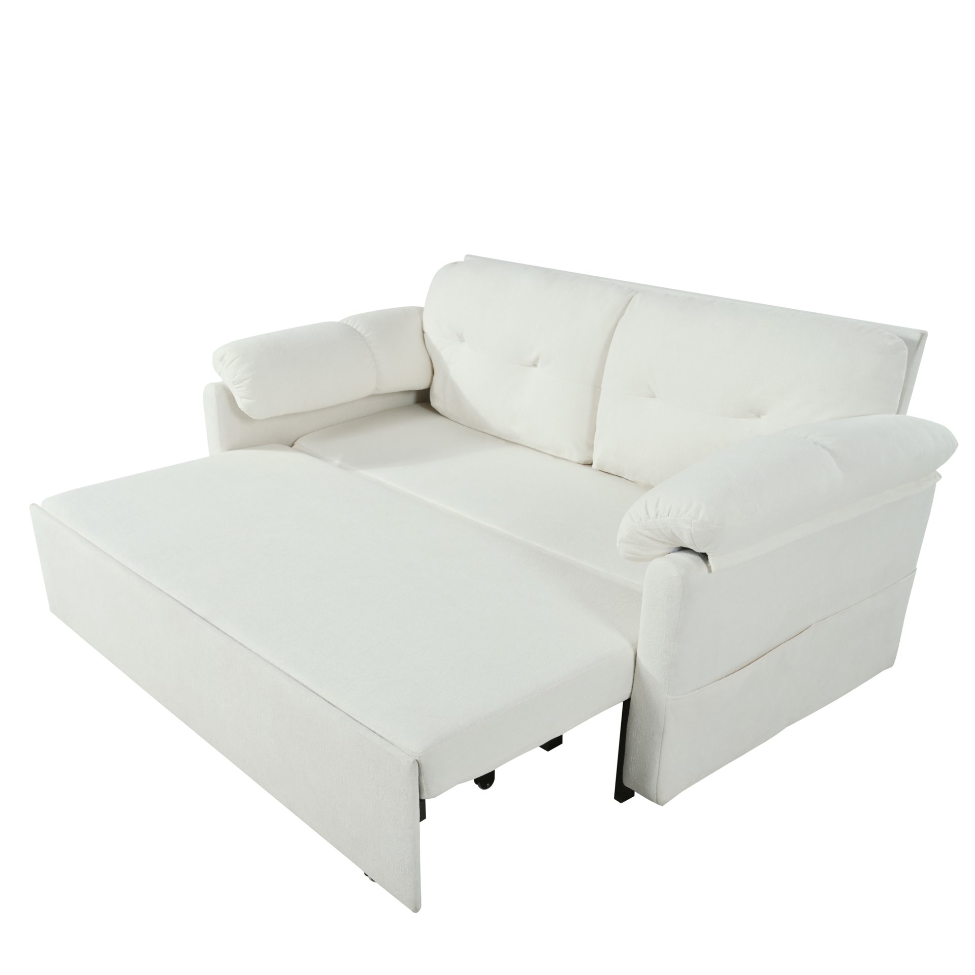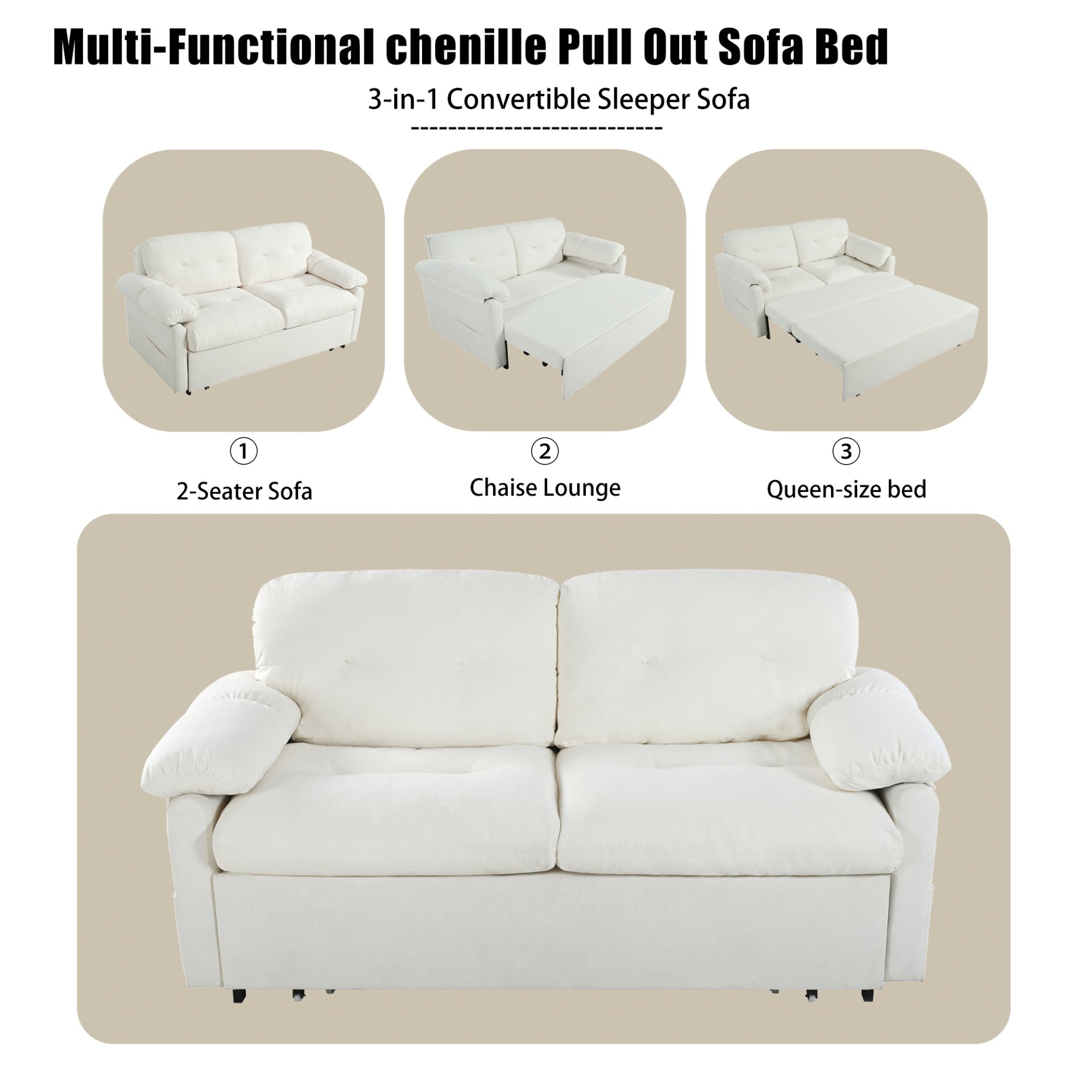 Modern Convertible Sleeper Sofa Bed With Pull Out Queen Design, Side Storage & Thick Cushions Chenille Loveseat For Living Room Or Bedroom 3 In 1 Function – Beige